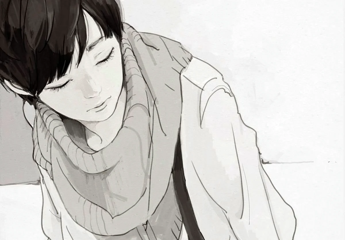 Какая загадочная и трогательная эмоция во взгляде аниме персонажей, когда их глаза закрыты — это истинное искусство передать внутренний мир персонажа через жест и выражение лица.
