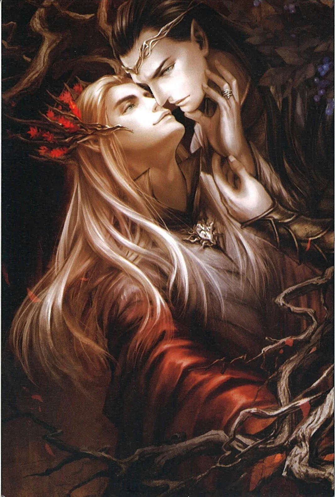 Как же захватывающе выглядят эльфийские герои на этих картинках! Их загадочная красота и грация просто завораживают. И эта тема любви к человеку добавляет загадочности и романтики. Как будто встречаются два разных мира в одном образе. Просто волшебно!