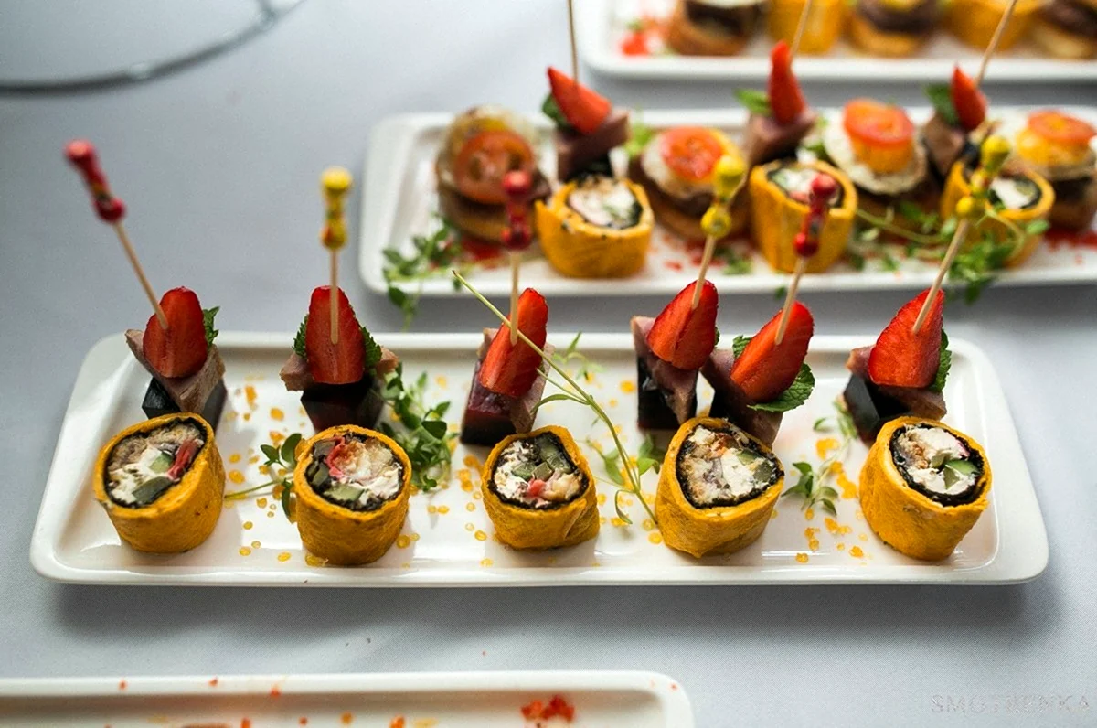 Наши блюда не только изысканно приготовлены, но и умело поданы! Каждая тарелка — настоящее произведение искусства, способное порадовать глаз и баловать вкусовые рецепторы. Поверьте, гости будут в восторге от подачи нашего банкетного меню!