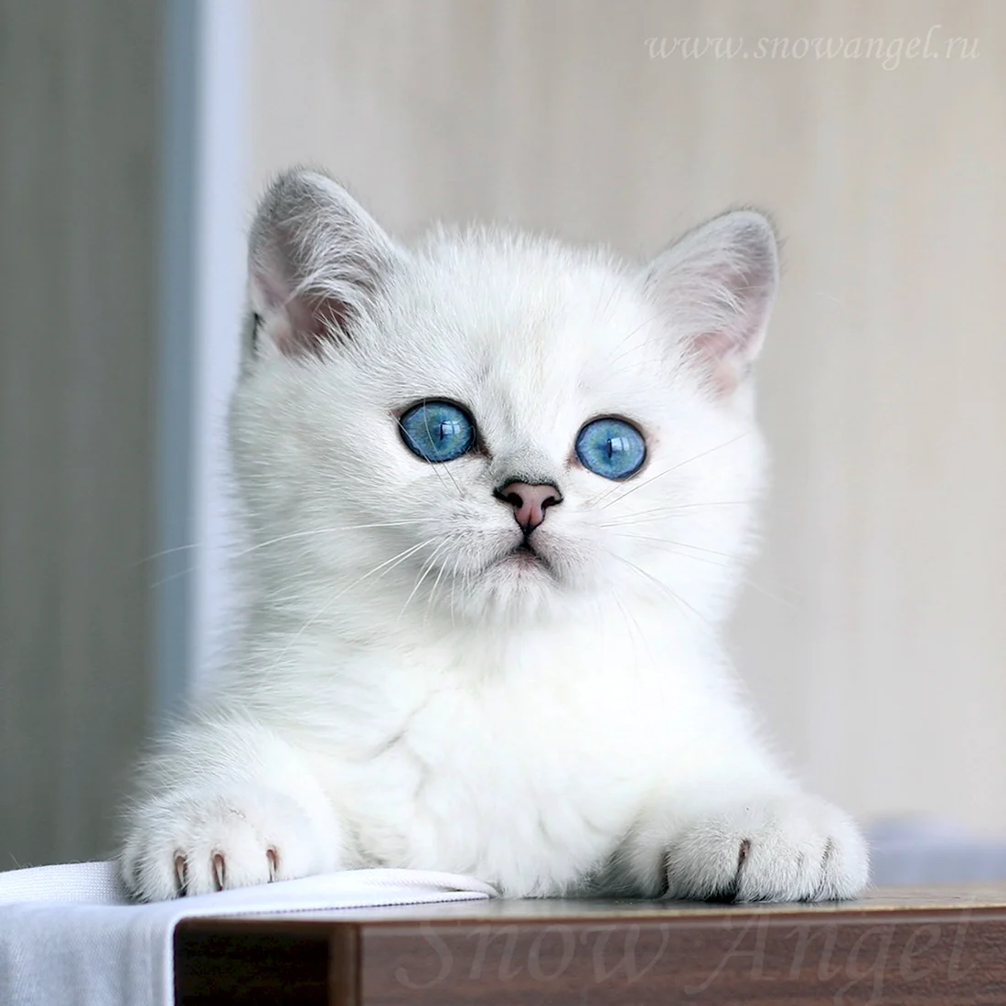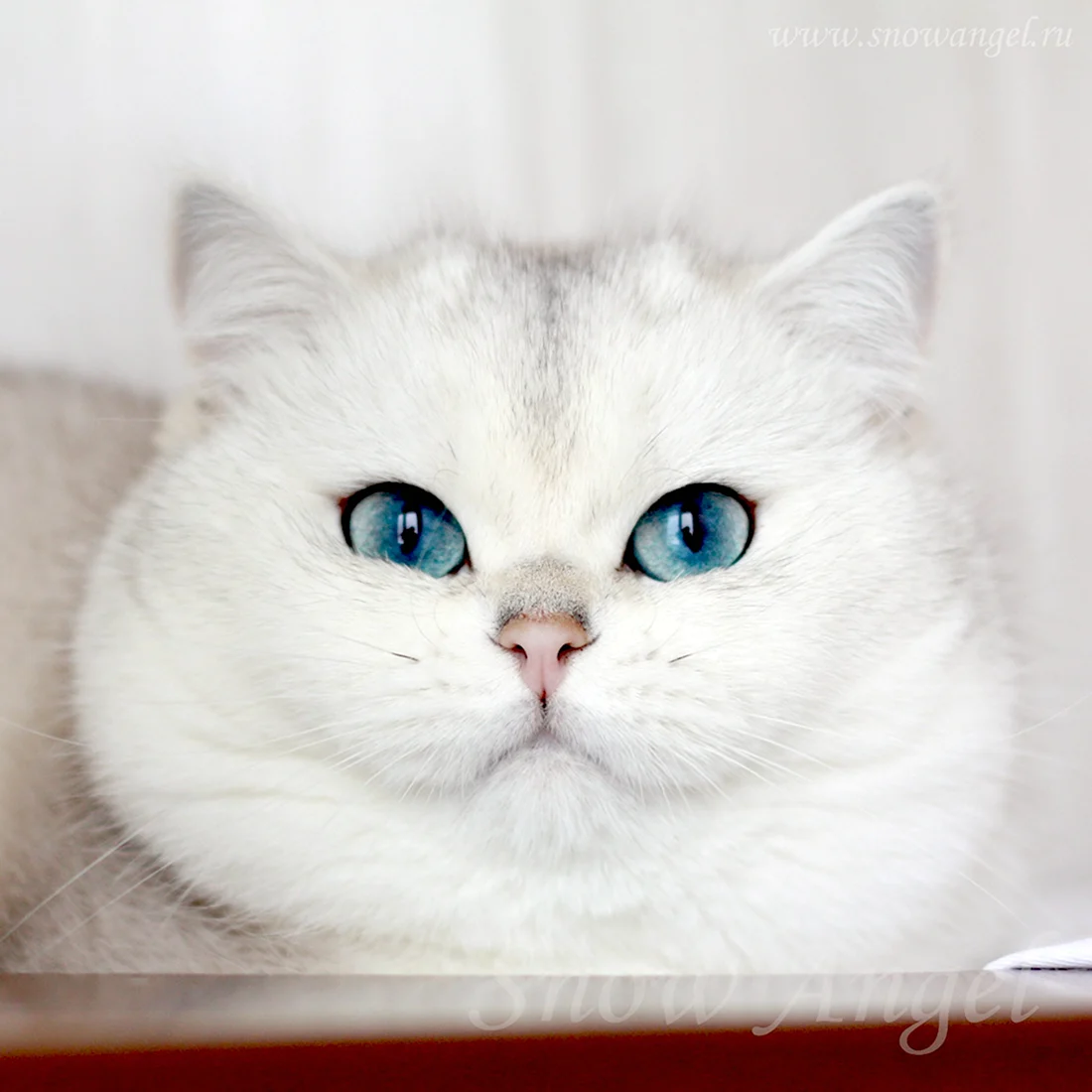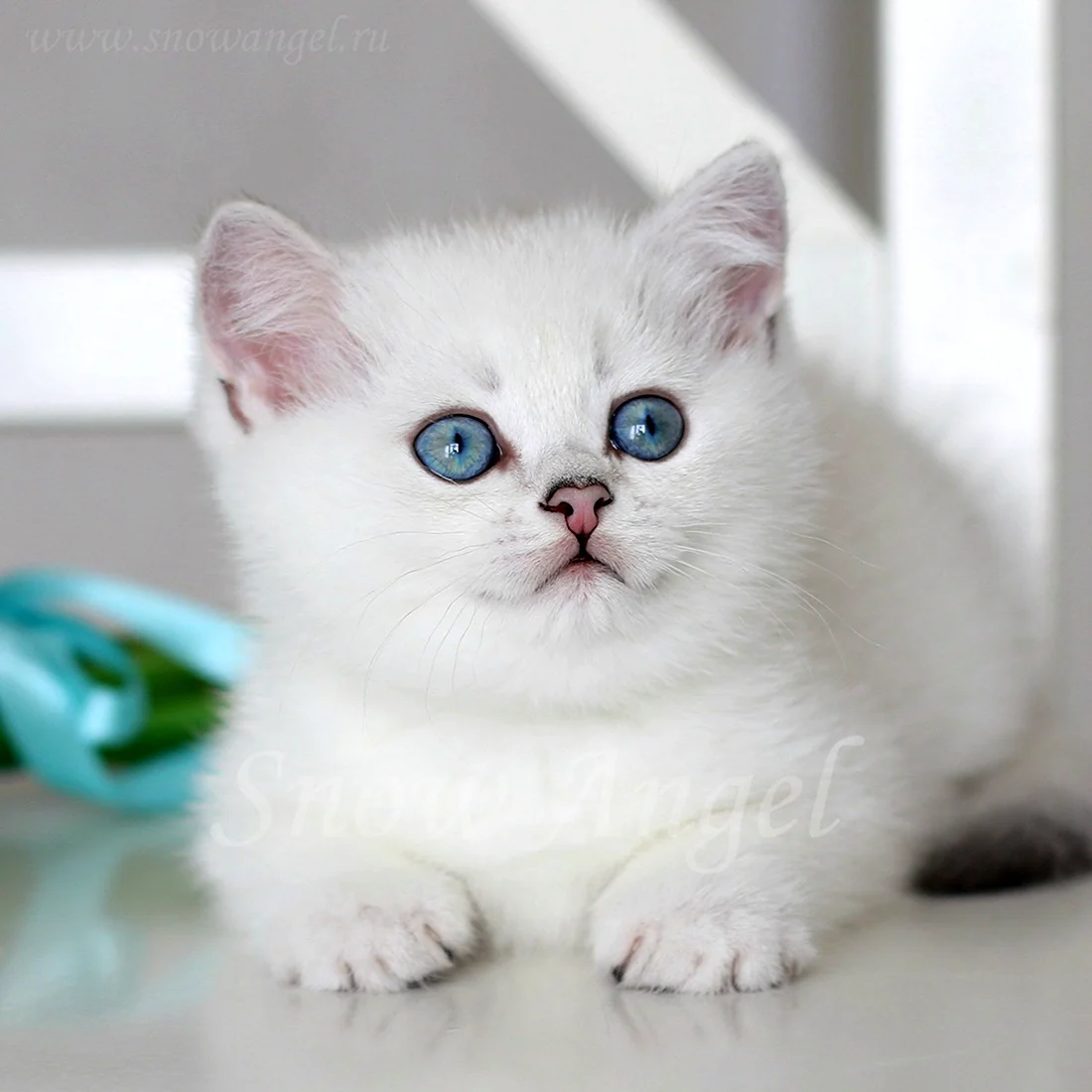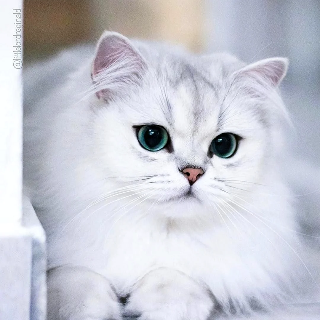 Прекрасный пушистый котик с нежным белым мехом и удивительными глазами, словно две глубокие лазурные озера.