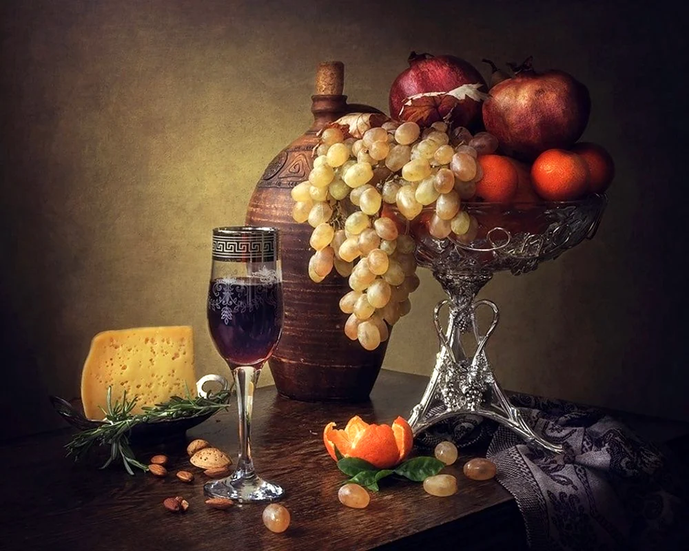 Когда в руках бокал вина и перед глазами красота сочных фруктов, ощущаешь себя настоящим аристократом, наслаждающимся жизнью в полной мере. Этот момент создает идеальную атмосферу для отдыха и наслаждения каждым глотком и вкусом. Вечер в такой компании обещает быть незабываемым!