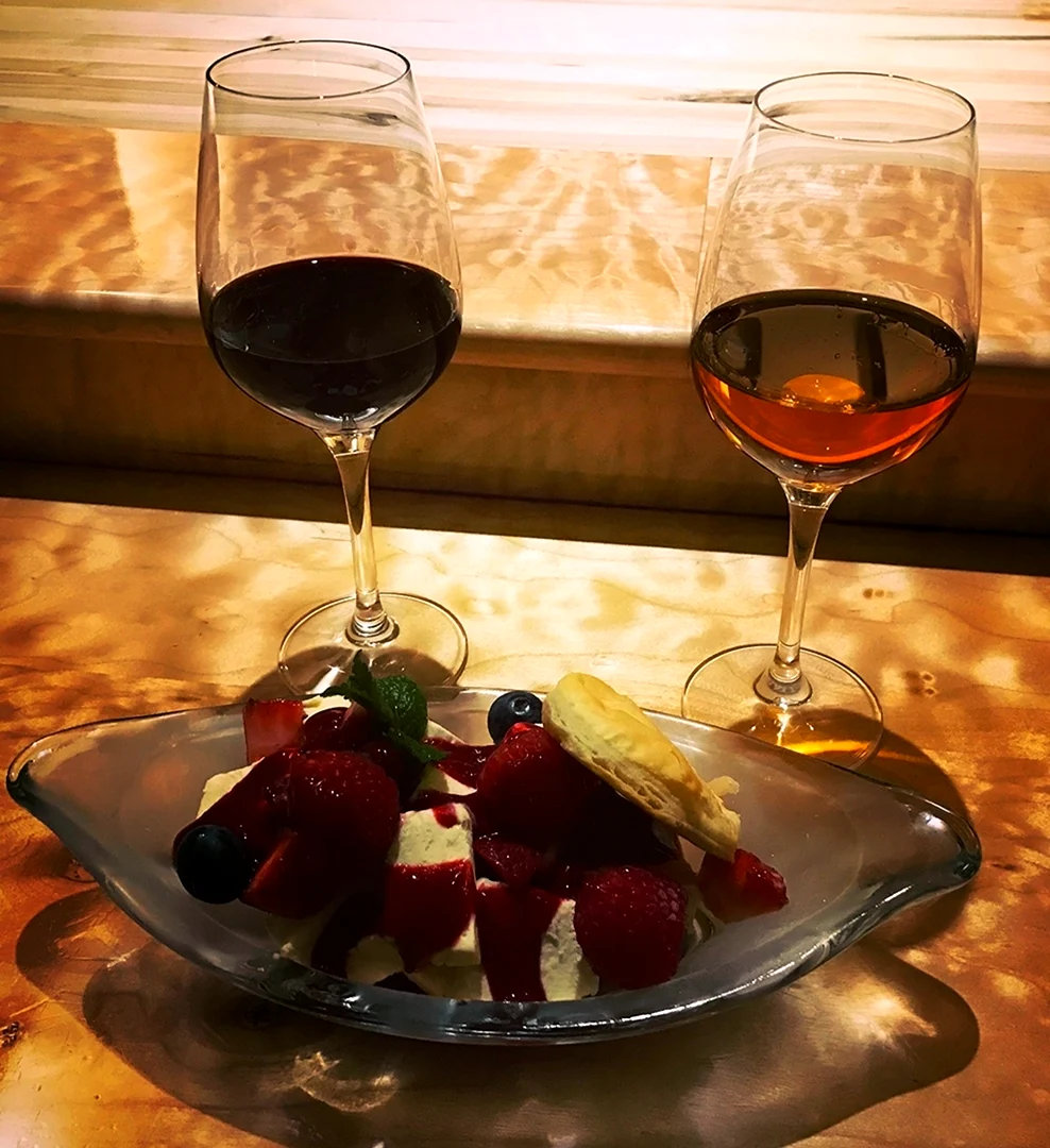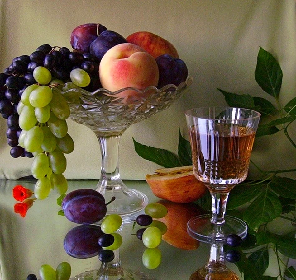 Так приятно наслаждаться вкусными фруктами и изысканным вином в уютной обстановке.