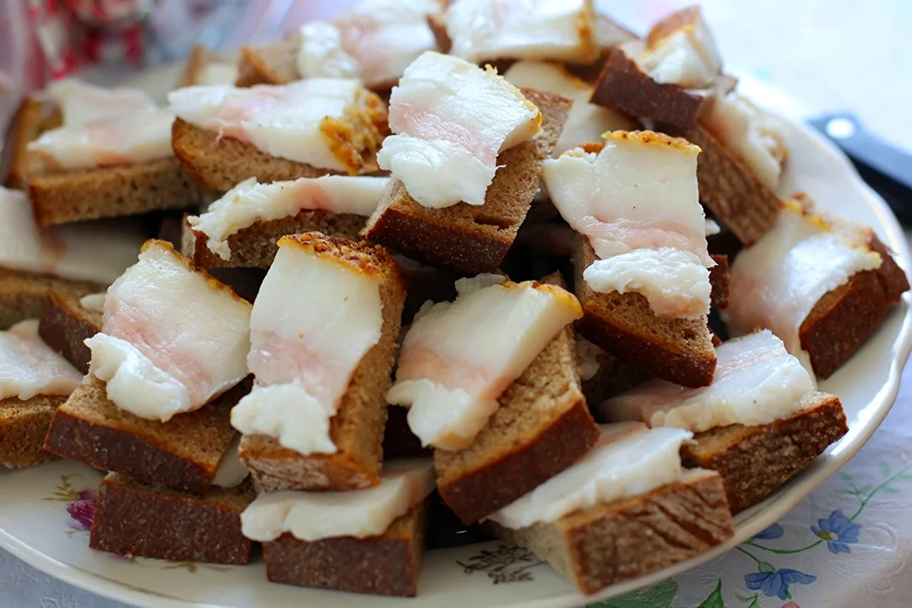 Вот это я понимаю — мужская еда! Черный хлеб, сало, и никакой химии — просто вкуснота на все 100!