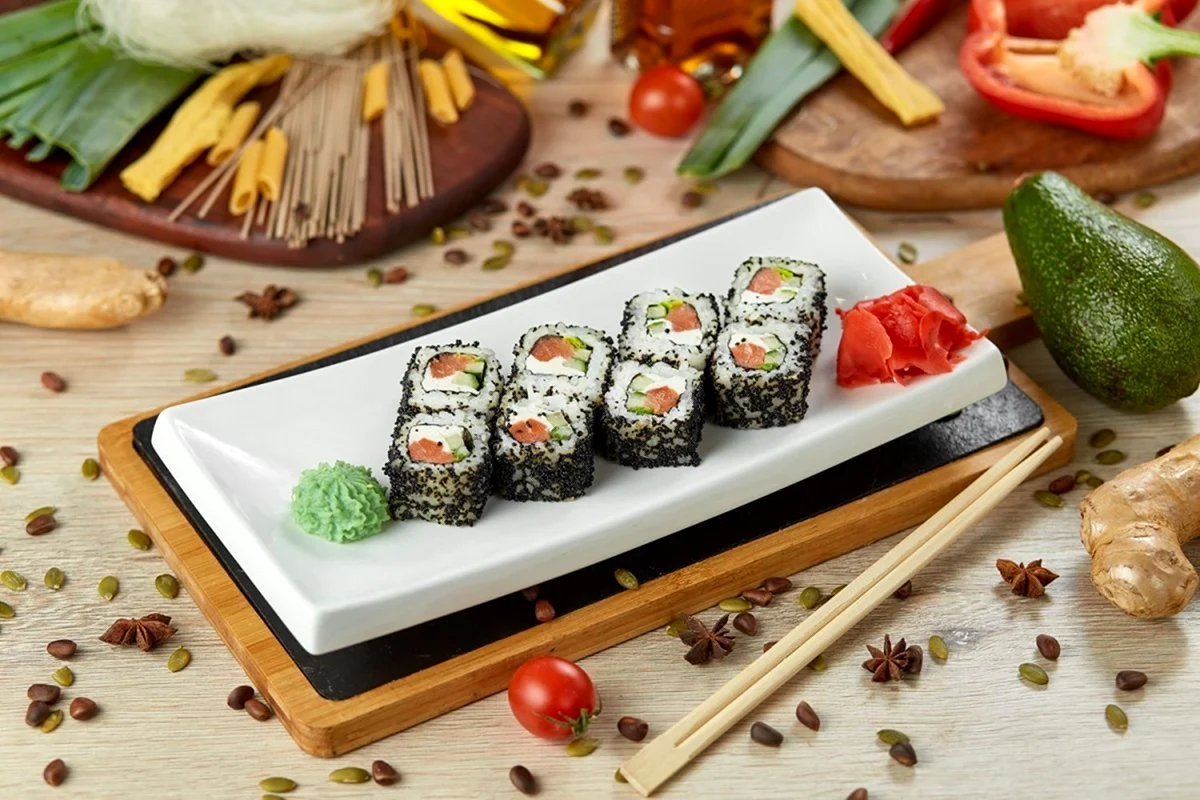 Ого, какой стильный фон! Прямо как из фильма про модных суши-маньяков !