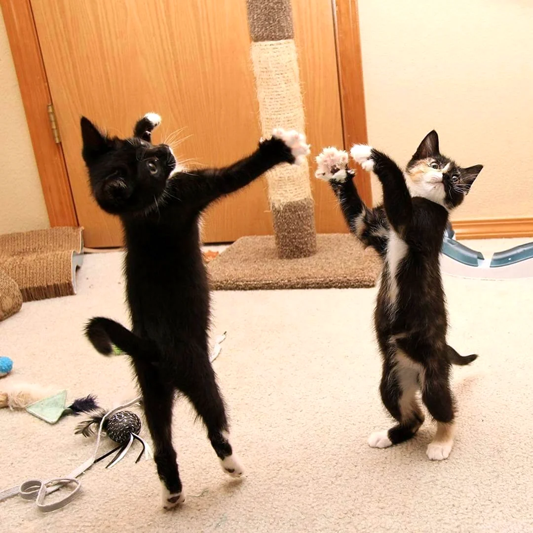 Ого, я никогда не думал, что кошки могут быть такими танцорами! Они точно знают, как поднять настроение на дискотеке. Теперь я вижу, что у них не только мягкий мех и милые усы, но и неплохой танцевальный талант. Пусть их ритмичные движения вдохновляют нас на новые победы и веселые вечеринки!
