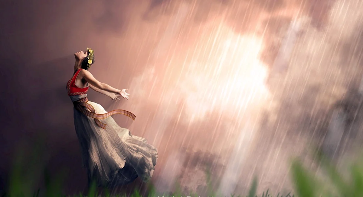 Ого, вот это да! Такой яркий и атмосферный взгляд на древнюю богиню, что сразу хочется поверить в магию дождя! ️