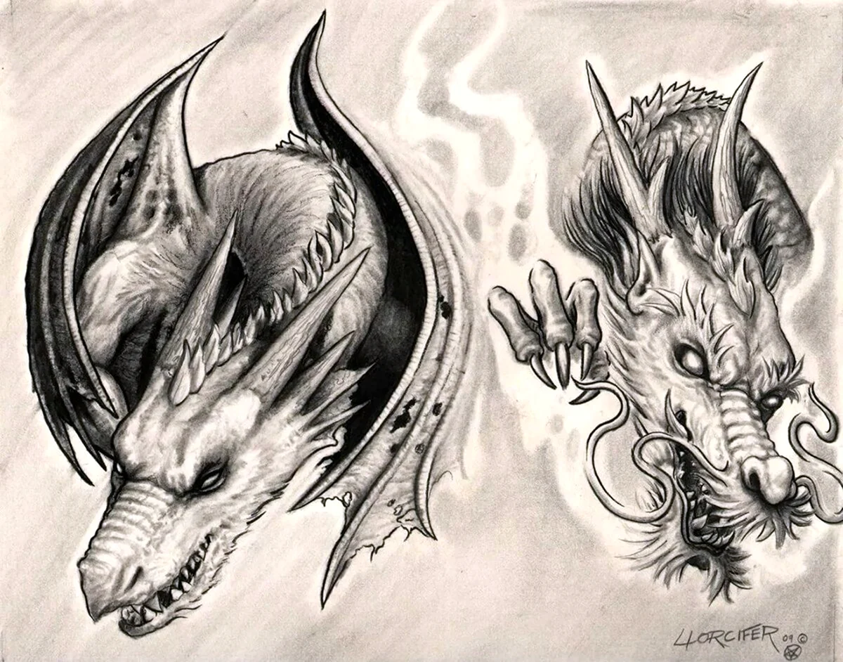 Прекрасные черно-белые изображения драконов завораживают своей атмосферой таинственности и загадочности.