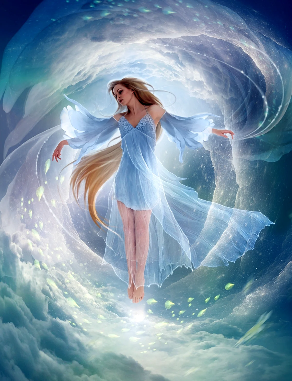 Ого, эта девушка просто летает! Так и хочется встать на облака и закружиться в танце вместе с ней! ️