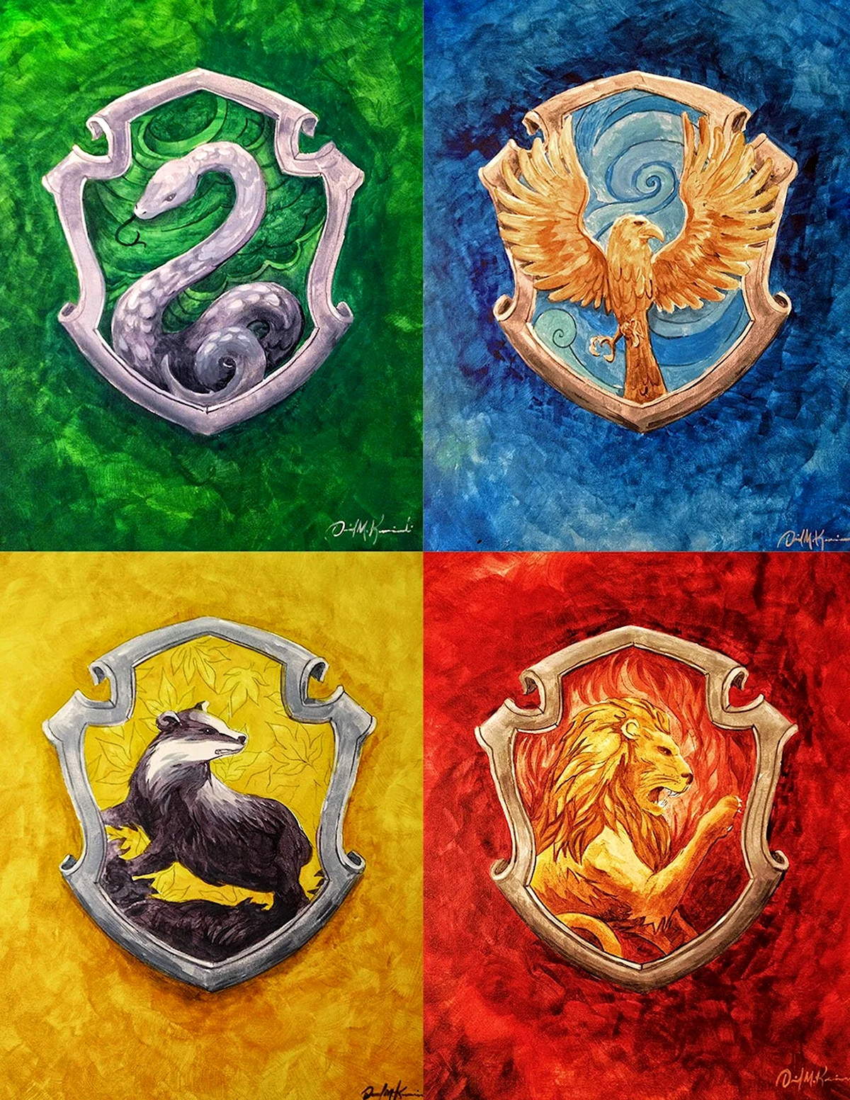 Захватывающие и волшебные работы искусства, погружают в мир магии и приключений, рассказывая о разных факультетах Хогвартса.