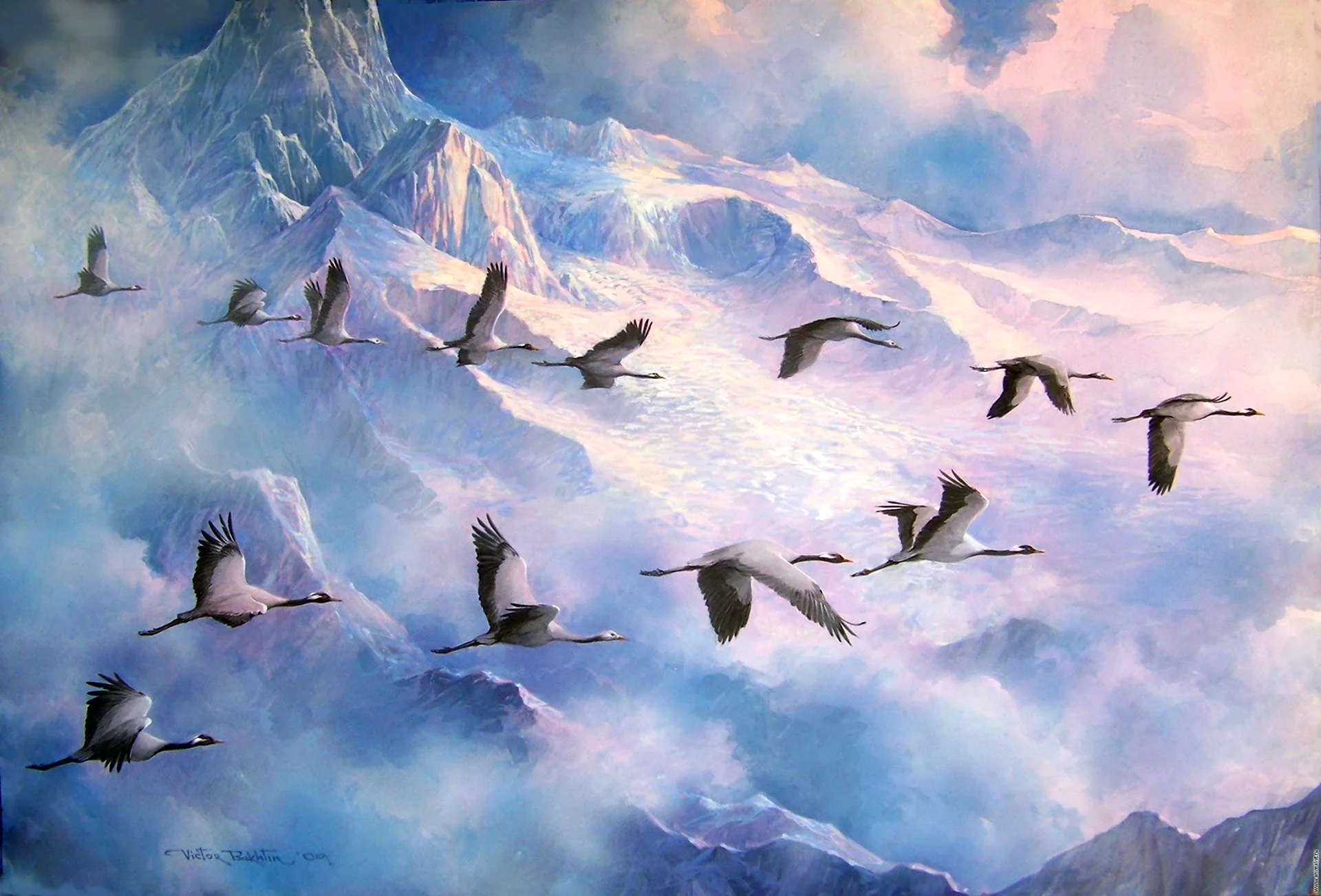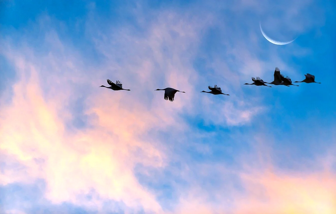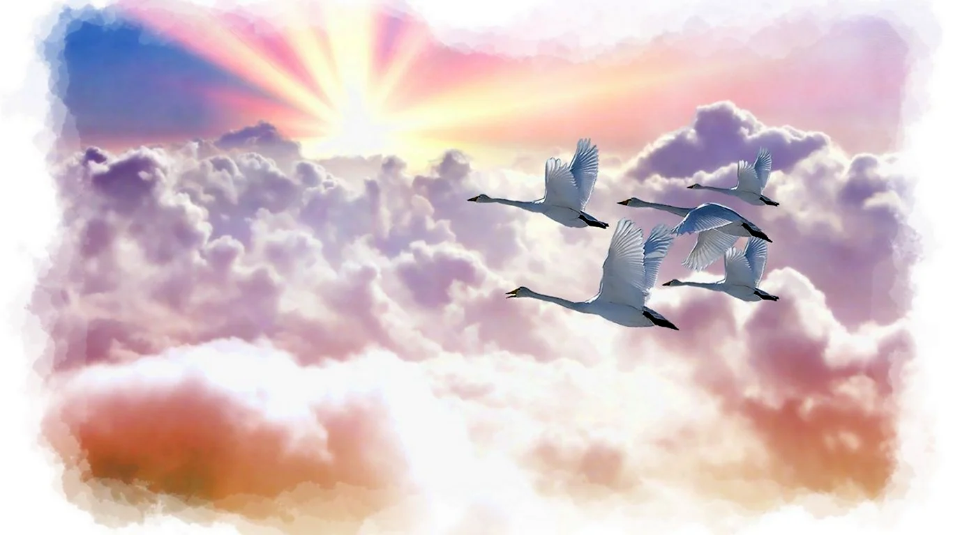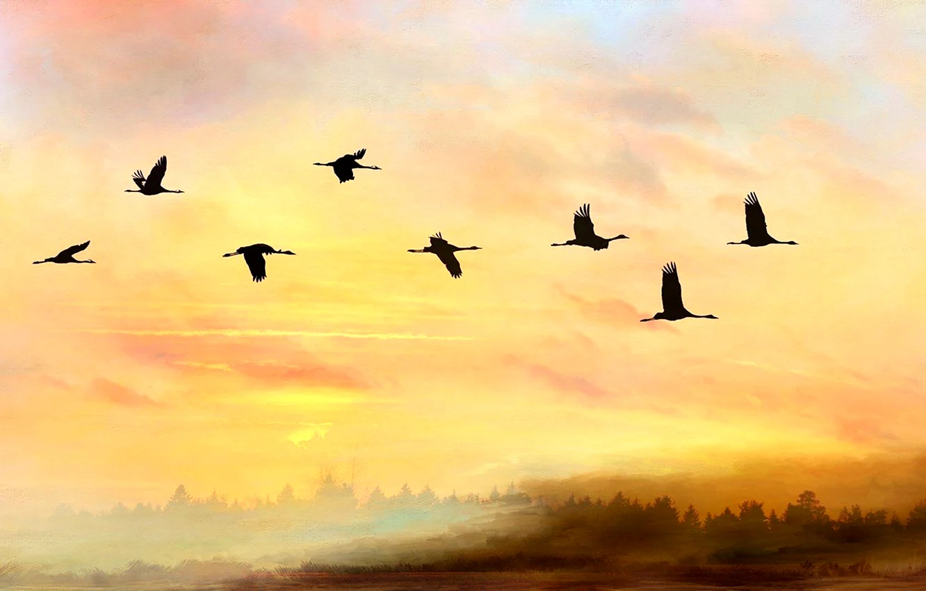 Как красиво! Эти журавли прямо в облаках, будто на встречу к новым вершинам! Очень лёгкая и воздушная атмосфера!