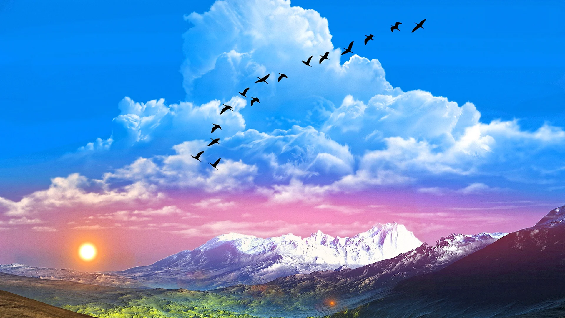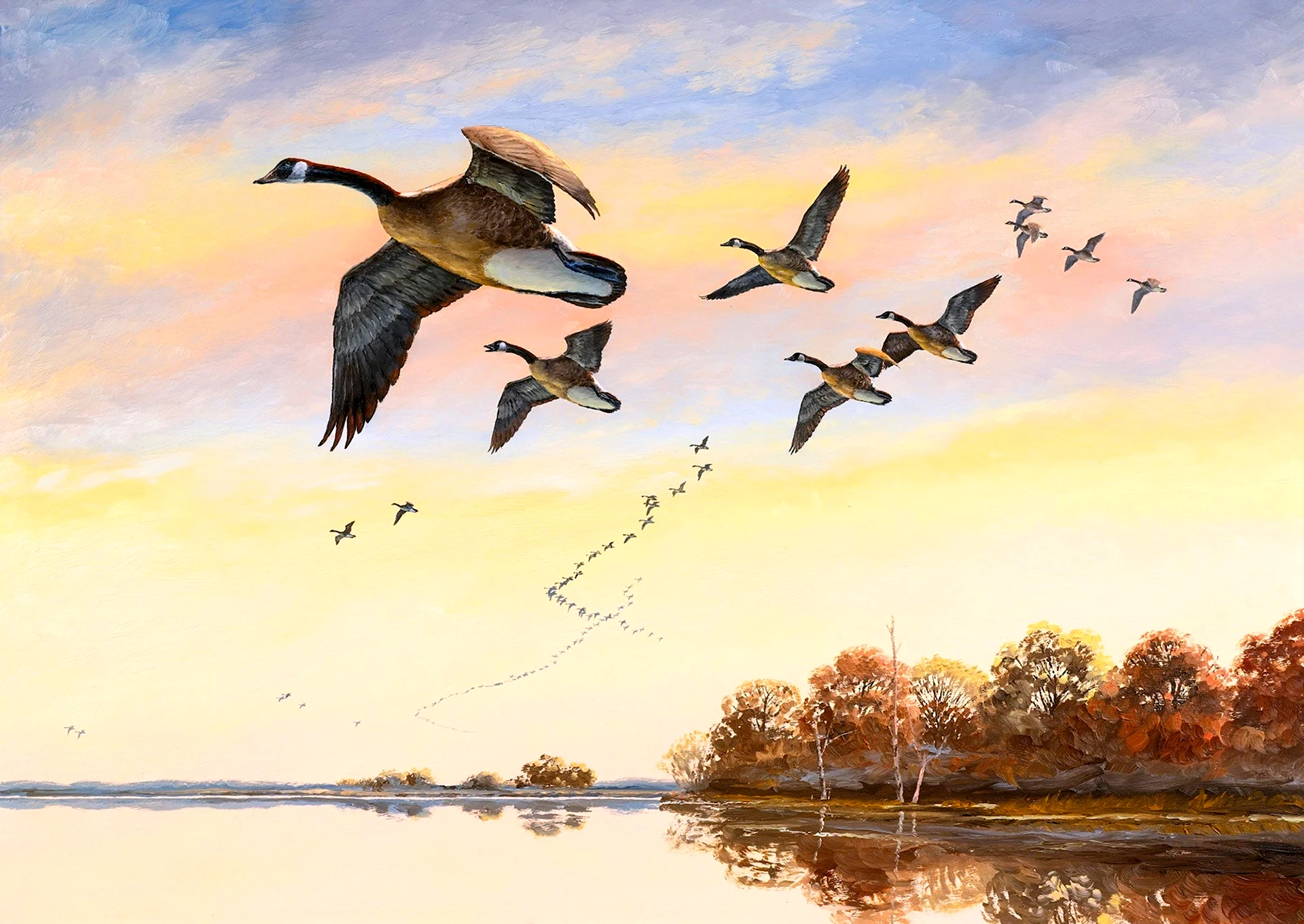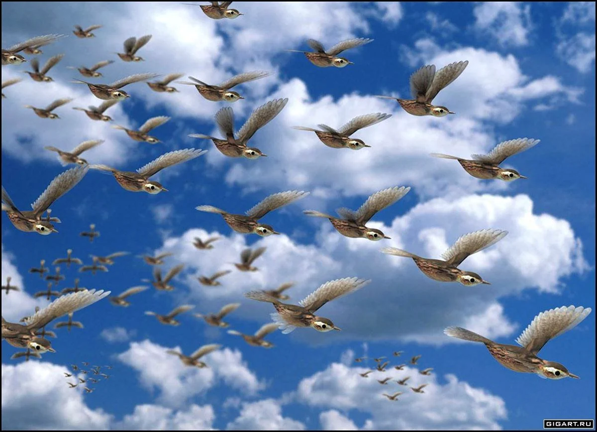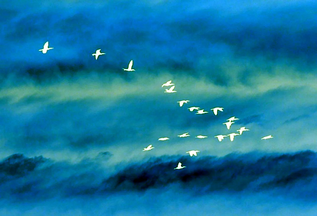 Как красиво! Эти журавли прямо в облаках, будто на встречу к новым вершинам! Очень лёгкая и воздушная атмосфера!