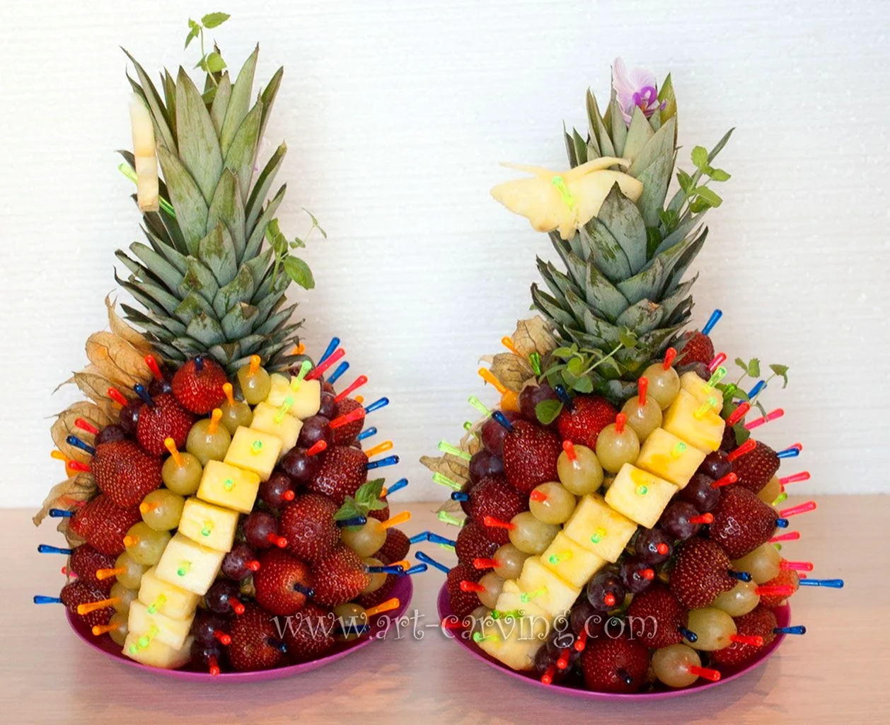 Эти фруктовые шедевры просто восхитительны! Кто бы мог подумать, что ананас может быть таким искусством? Настоящий праздник для глаз и вкусовых рецепторов!