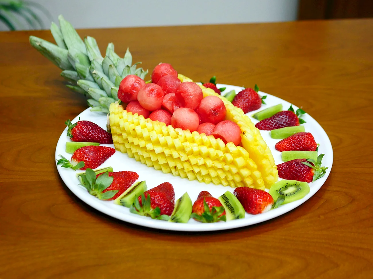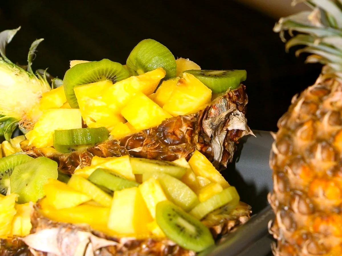 Прохладная фруктовая нарезка с сочными ананасами — отличный способ освежиться в жаркий день и порадовать близких своим вкусным лакомством!