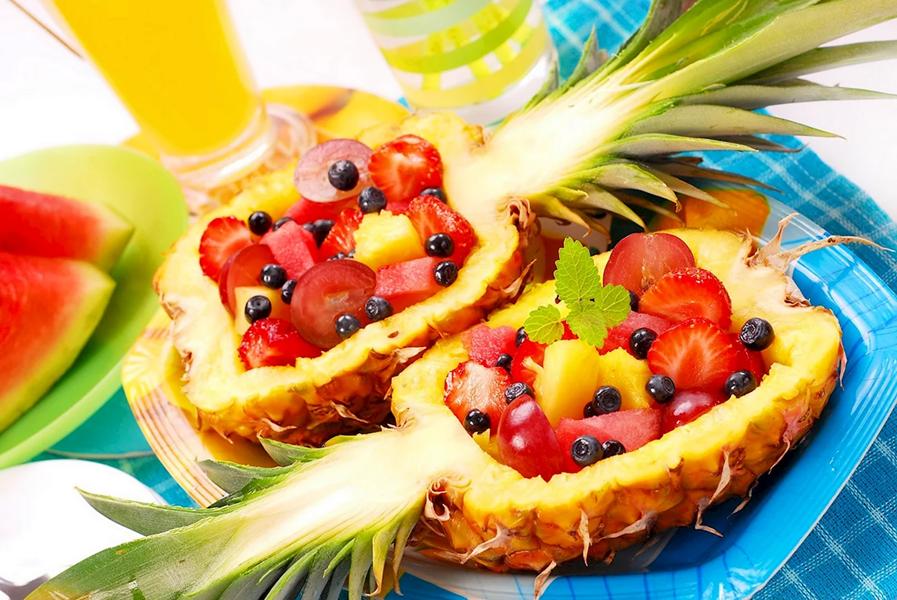 Ананас на картинке точно на пьедестале! Такой коктейль из вкусов, что даже фрукты бы позавидовали!