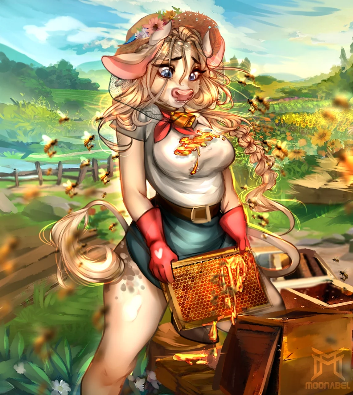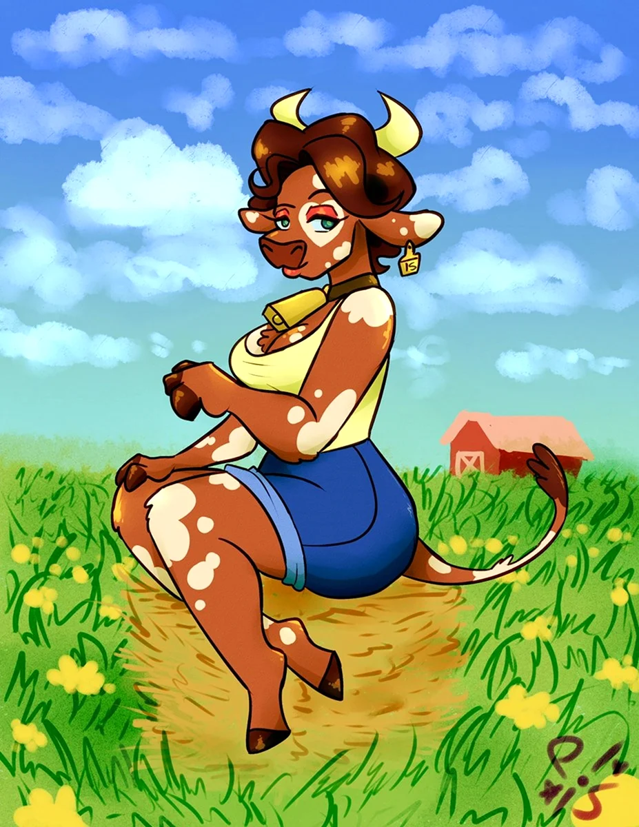 Ого, какой чудесный фурри-арт! ✨ Это, наверное, первая корова, которую я видела, и она мне очень понравилась! Такое ощущение, что она только что вышла из мультика, где и молоко, и сыр — неотъемлемая часть волшебства. А глаза такие выразительные, что, кажется, она сейчас начнёт рассказывать свои коровьи истории!