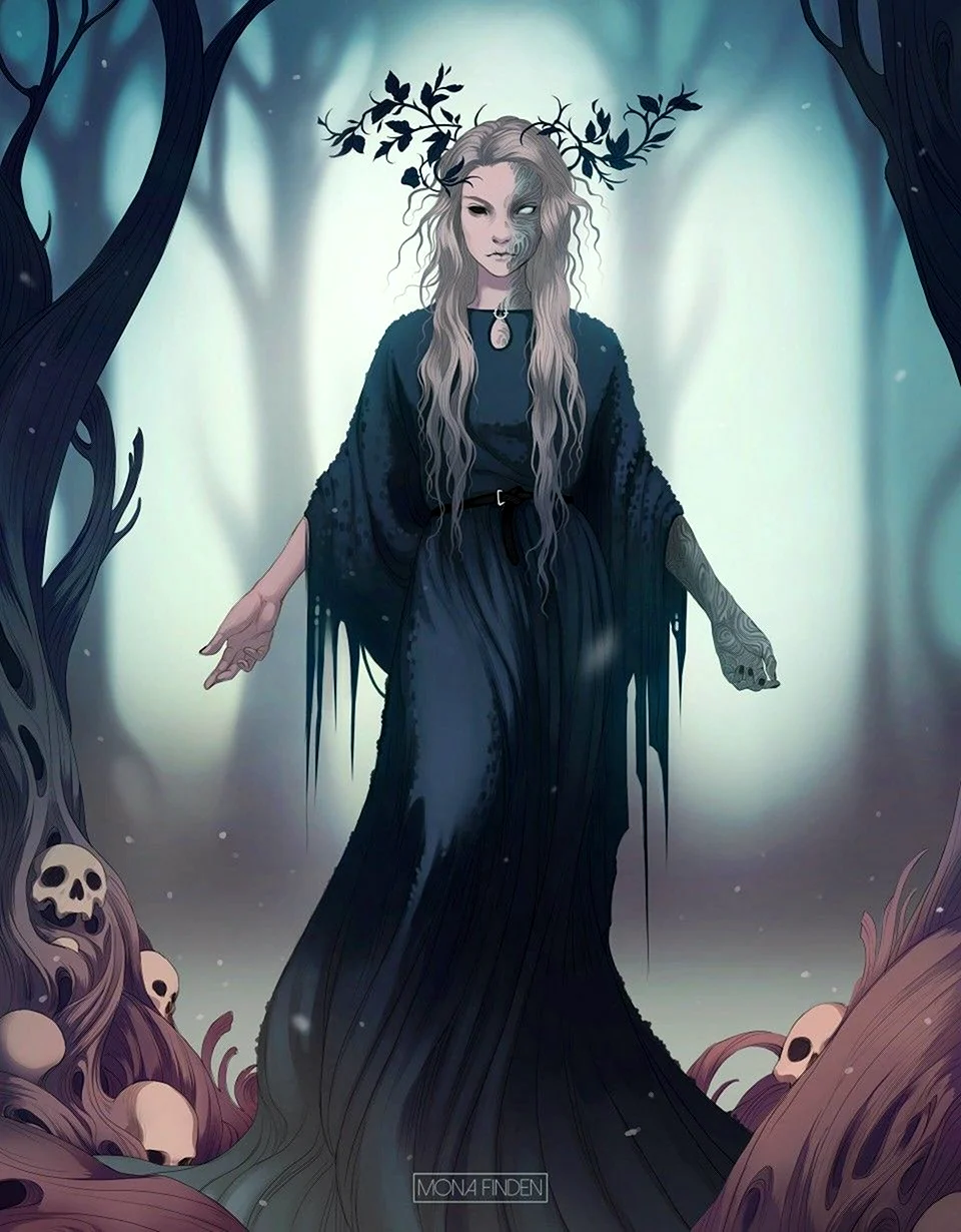 Иллюстрации и фотографии с изображением Хели — богини мифологии, очаровывают своей загадочностью и мощью, пробуждая во мне чувство восхищения и вдохновения.