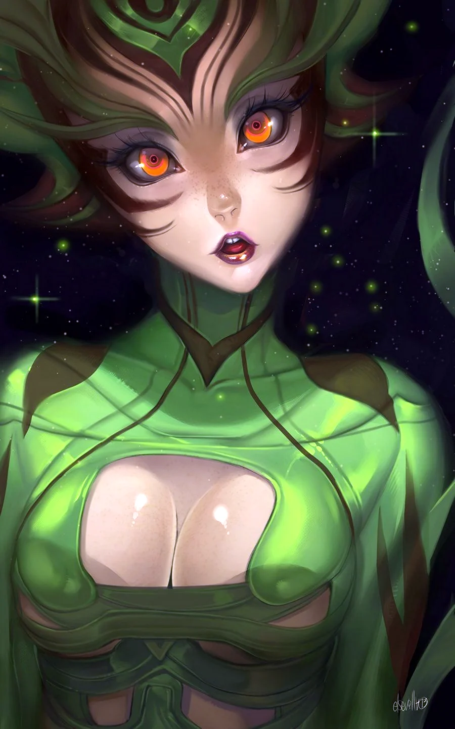 Вот это да, космический арт просто завораживает! Невероятно, какой потенциал у художников, создающих такие фантастические образы инопланетянок. Я в восторге от каждой детали идеи, отраженной на этих ярких картинках. Кажется, что они сами заглянули к нам с другой планеты, чтобы показать свою удивительную красоту. Великолепная работа!