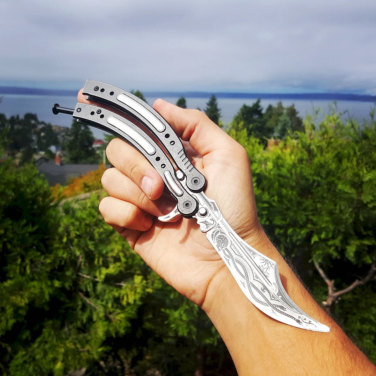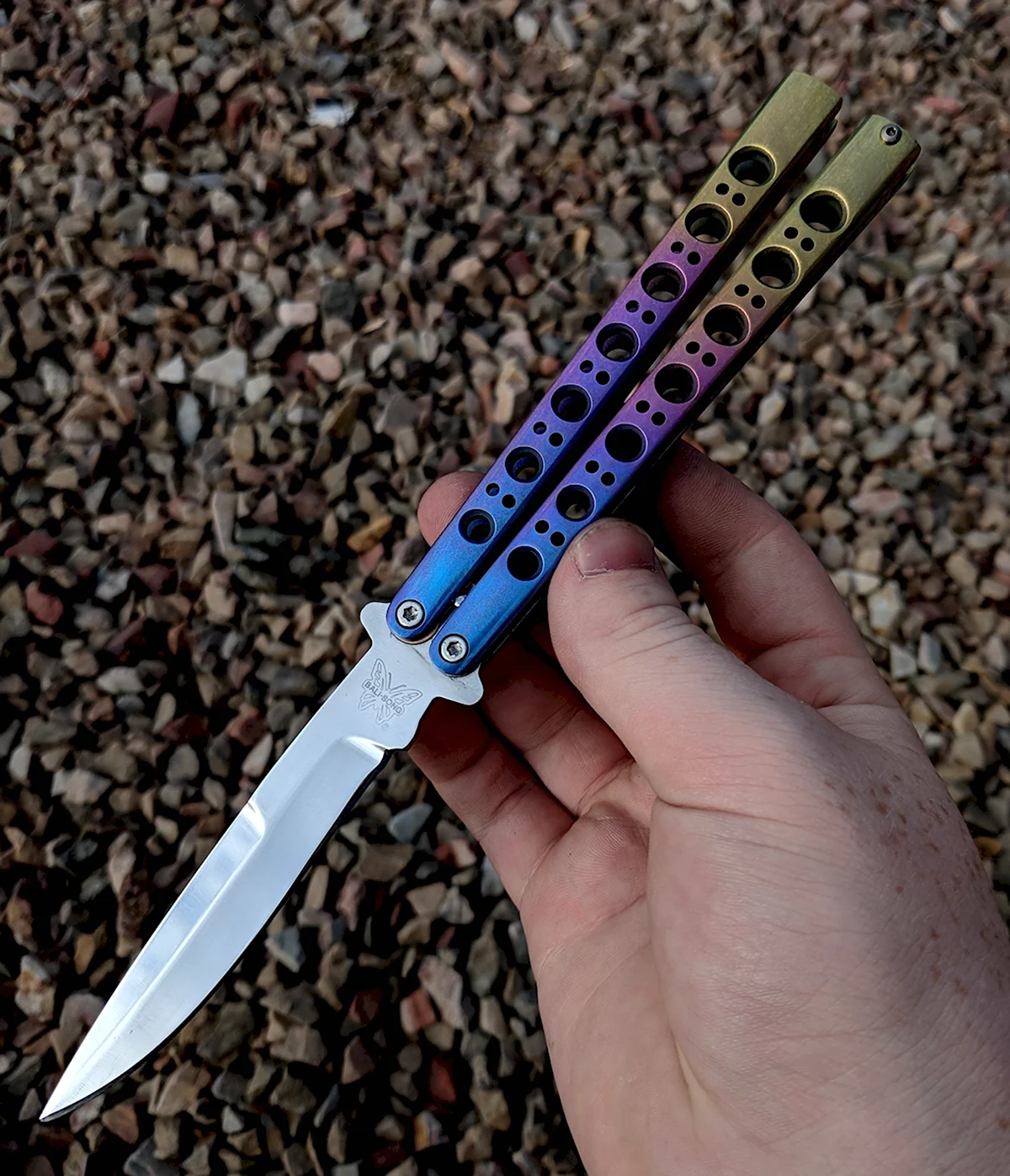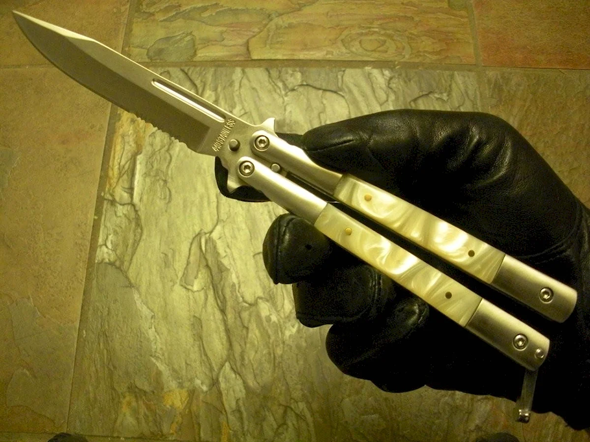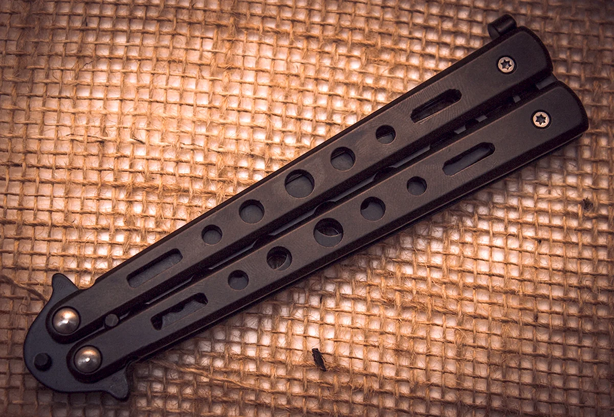 Вот это оружие! Какая красота и изящество в этой картинке ножа бабочки. Прямо представляю себя, как размахиваю таким красавцем и все вокруг остаются в изумлении. Настоящий мужской аксессуар!
