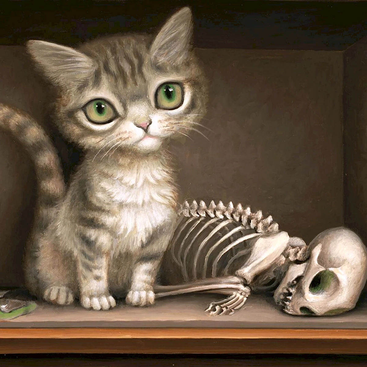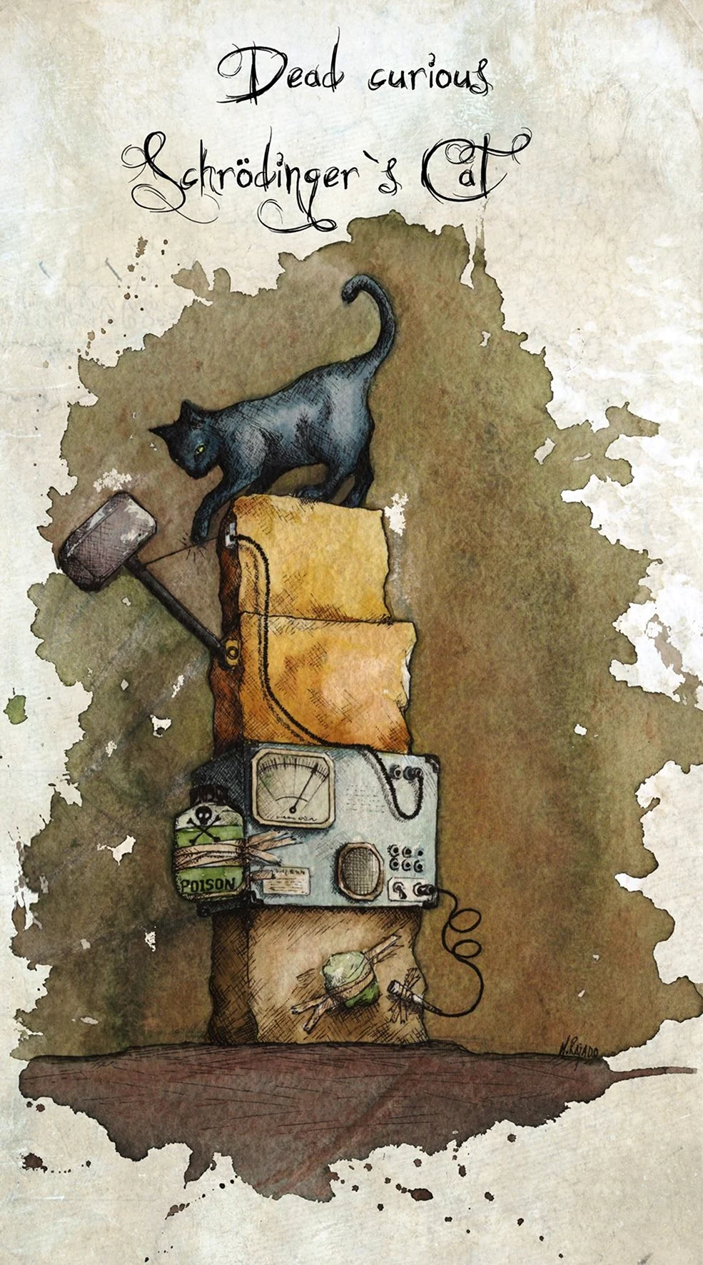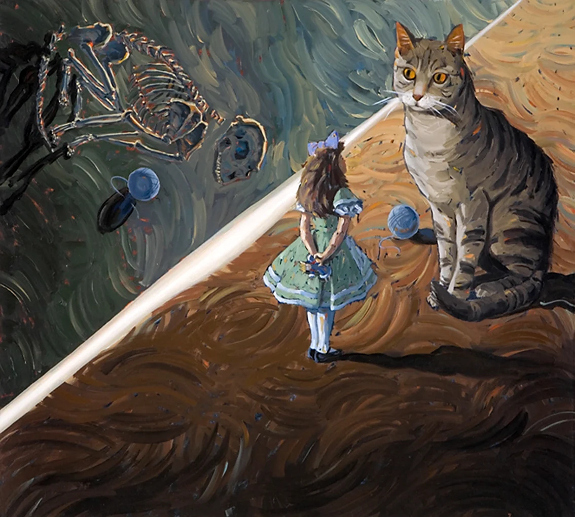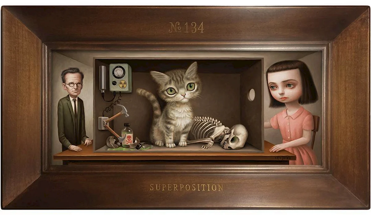 Смотрю на эти картины с изображением кота Шредингера и в голове сразу же возникает вопрос: он там живой или мертвый? Но в любом случае, этот арт просто потрясающий! Талант художника несомненен, каждая деталь проработана на высшем уровне. А взгляд этого кота… он словно загадывает какую-то тайну. Все-таки, коты — удивительные создания, не правда ли?