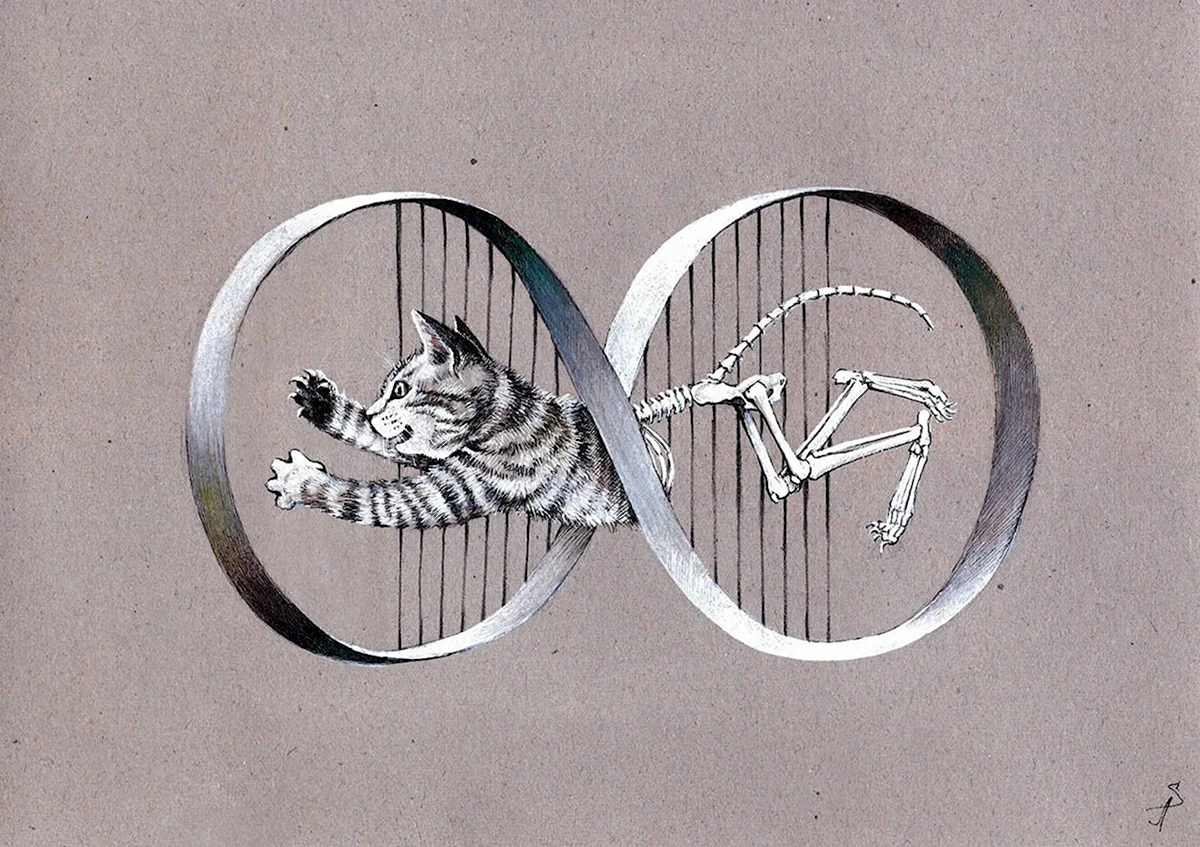Какие же забавные и креативные иллюстрации о коте, который одновременно и живой, и мертвый!