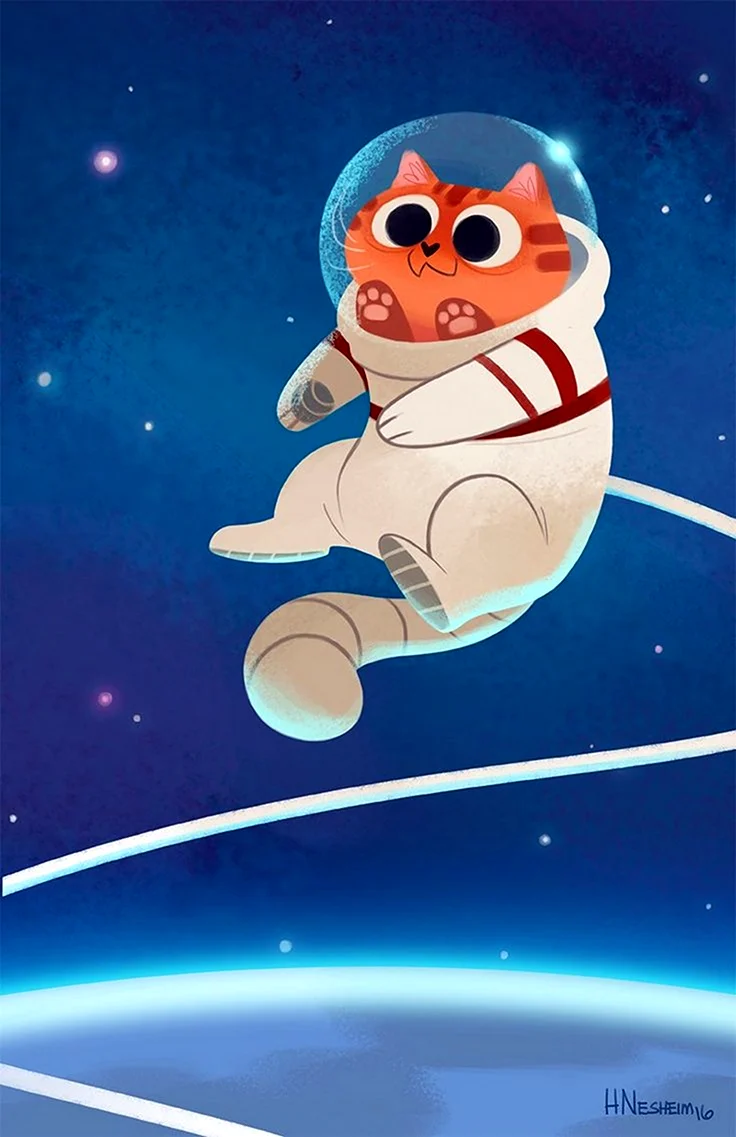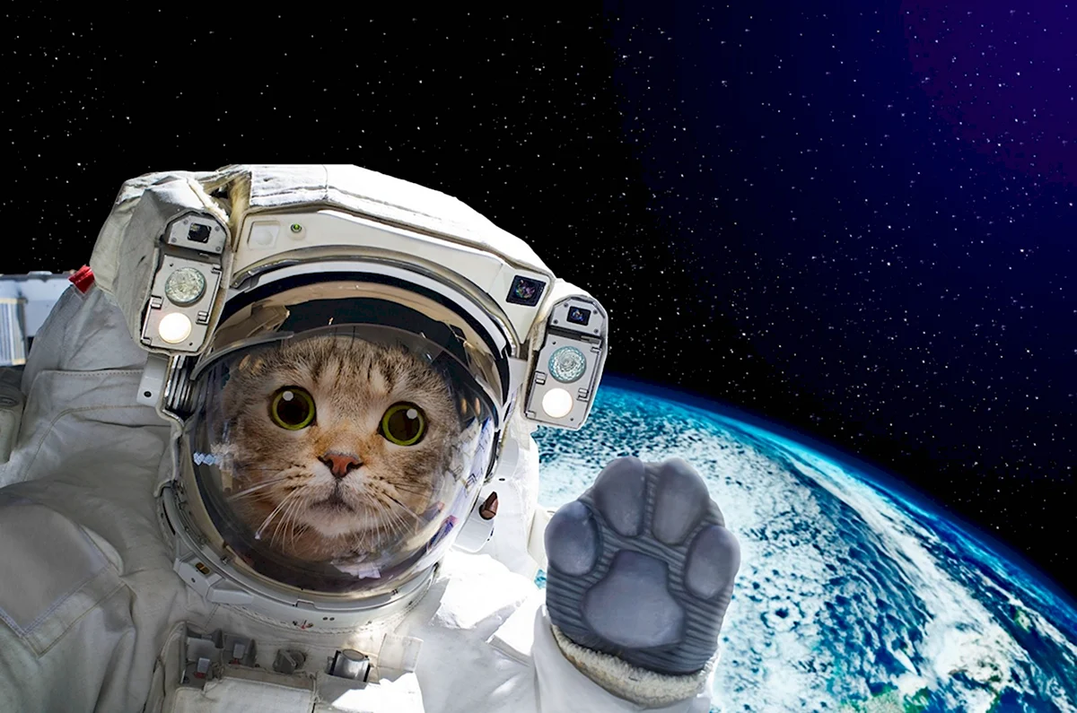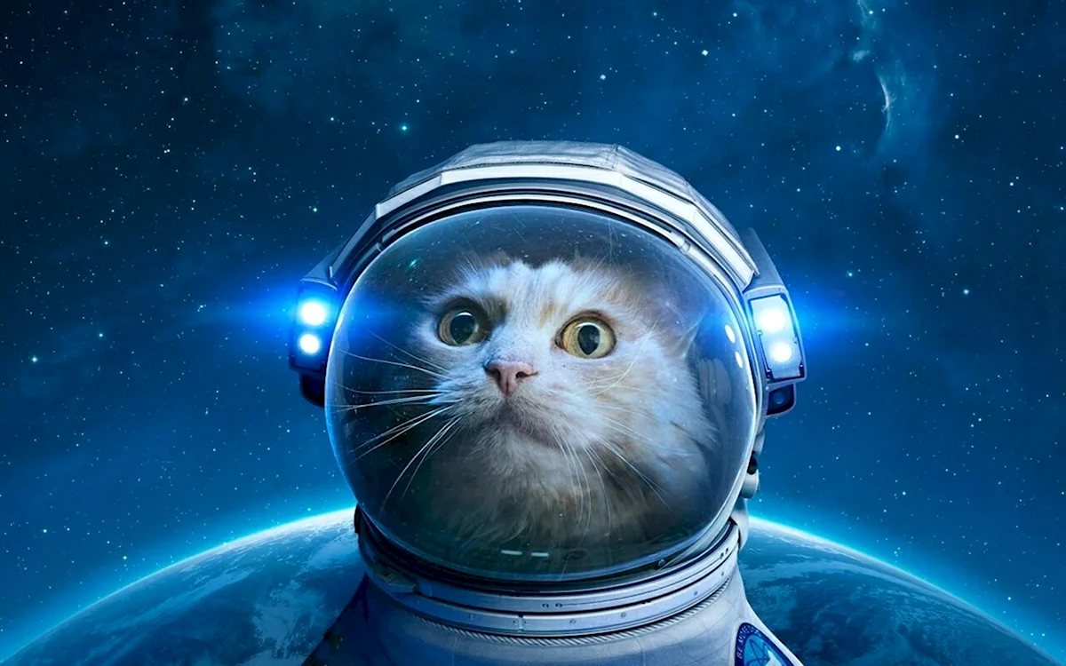 Этот милый котик в космическом костюме просто очаровательный!