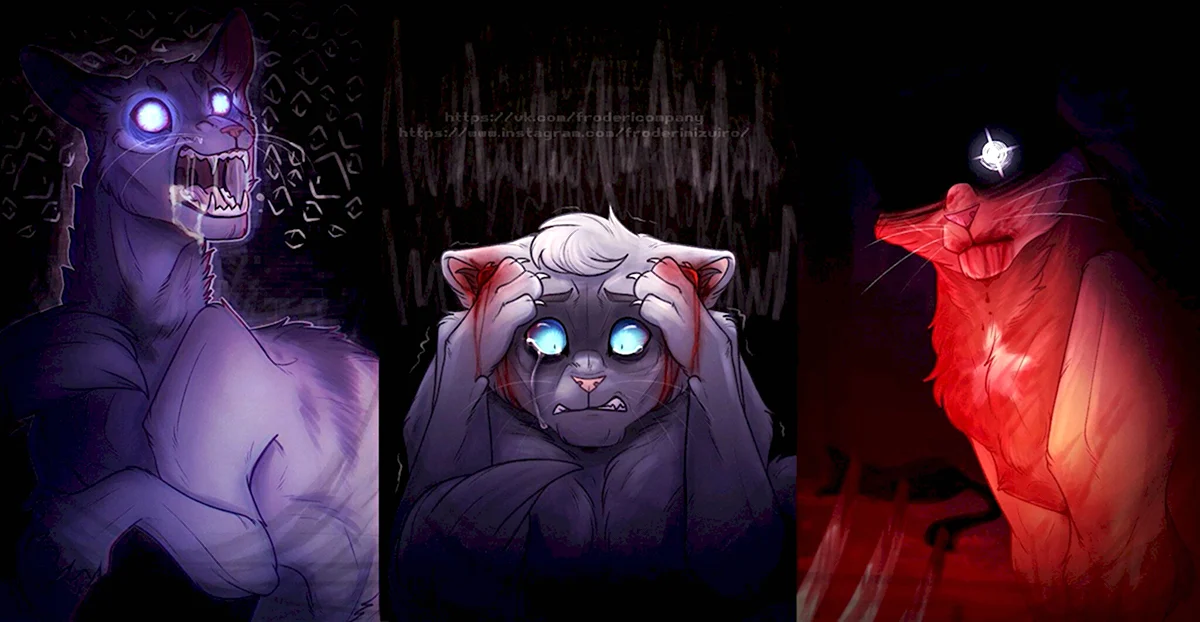 Прекрасные иллюстрации котов-воителей в стиле ОС, поразили своей мистической атмосферой и глубокими переживаниями героев.