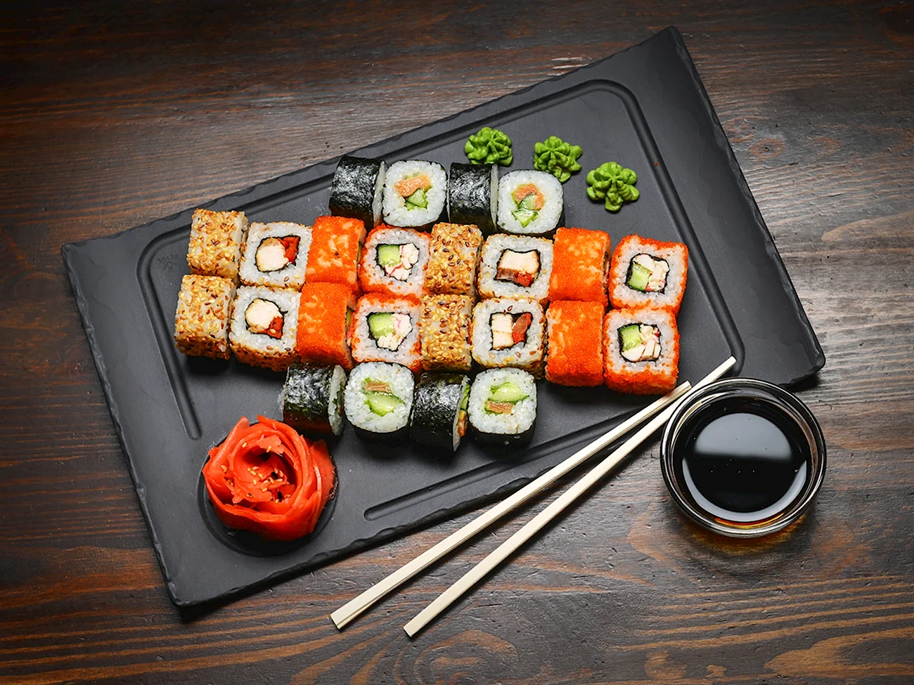 Просто потрясающий выбор изысканных роллов, каждый из них будто маленькое произведение искусства!