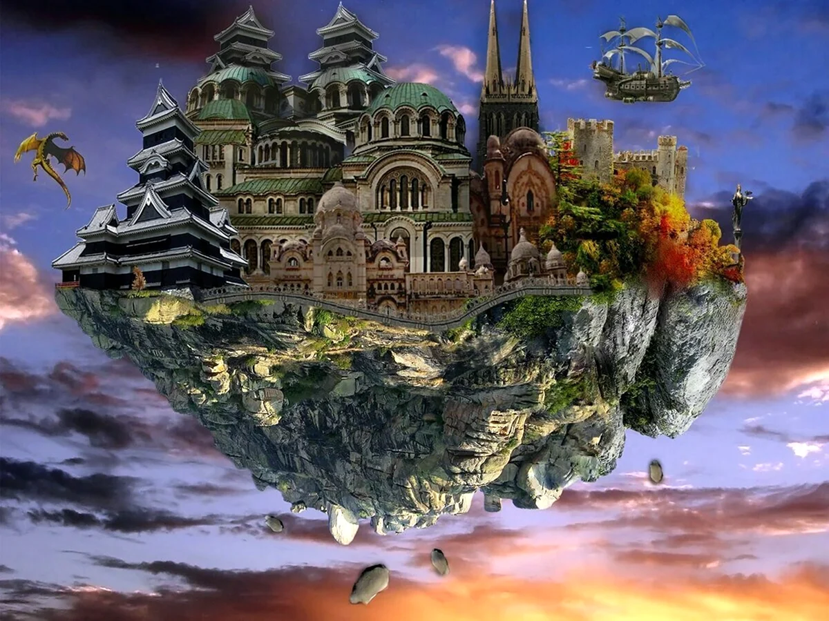 Увлекательная коллекция изображений, переносящих меня в удивительный мир фантастических городов, летающих в небесах.