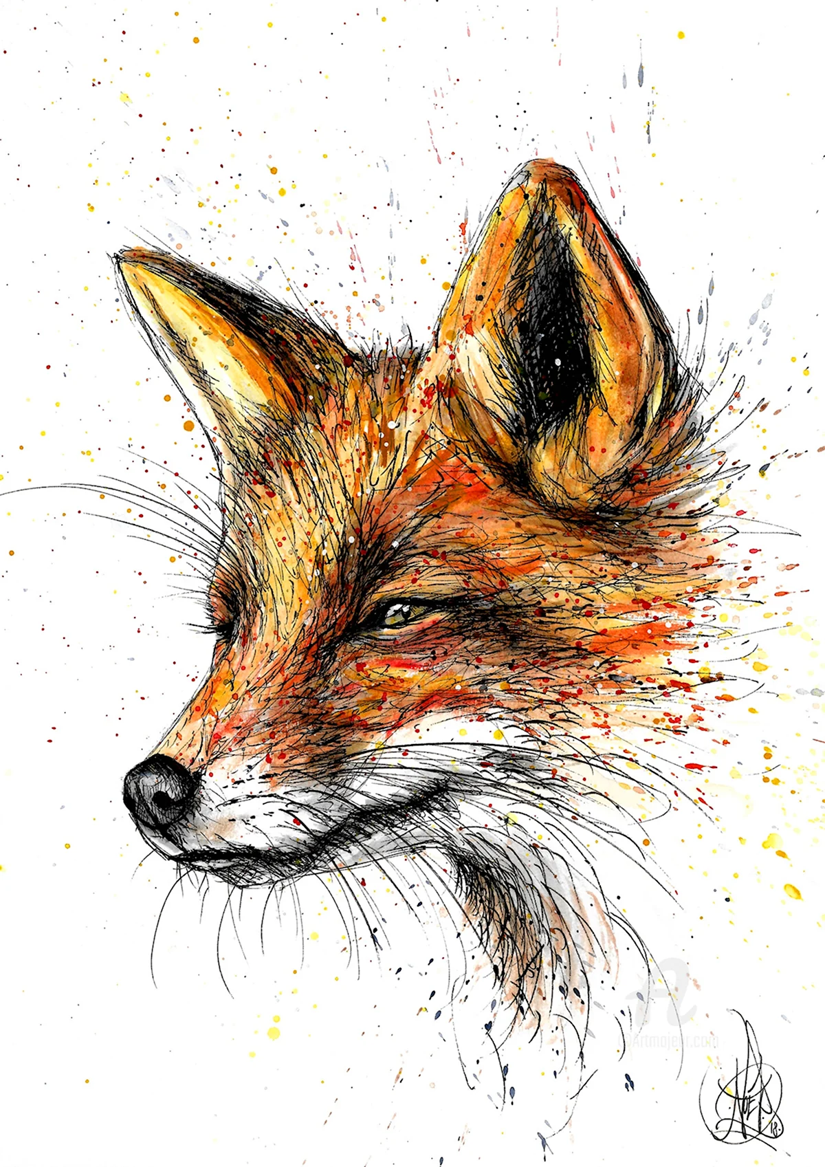 Вот это красота! Лиса в профиль выглядит как настоящая звезда на холсте. Такая изящная и загадочная, словно она хранит какие-то тайны. Очень впечатляет!