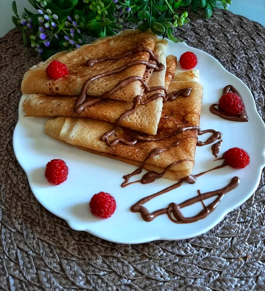 Вот это я понимаю — блины не просто как еда, а как искусство! Прямо на тарелке целая картина, не съедобная, а восхитительная!