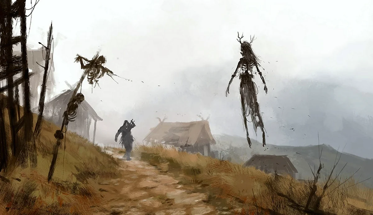 Под вечерними лучами солнца загадочные создания просыпаются в деревне, напоминая о древних легендах и мистических историях.