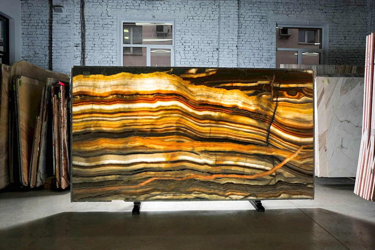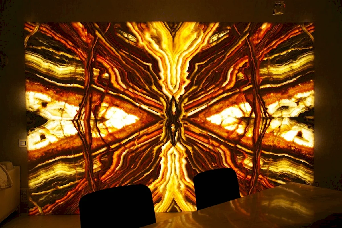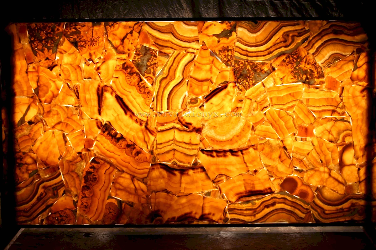 Прекрасное сочетание света и тени на текстуре онкса создает удивительную атмосферу загадочности и изысканности.