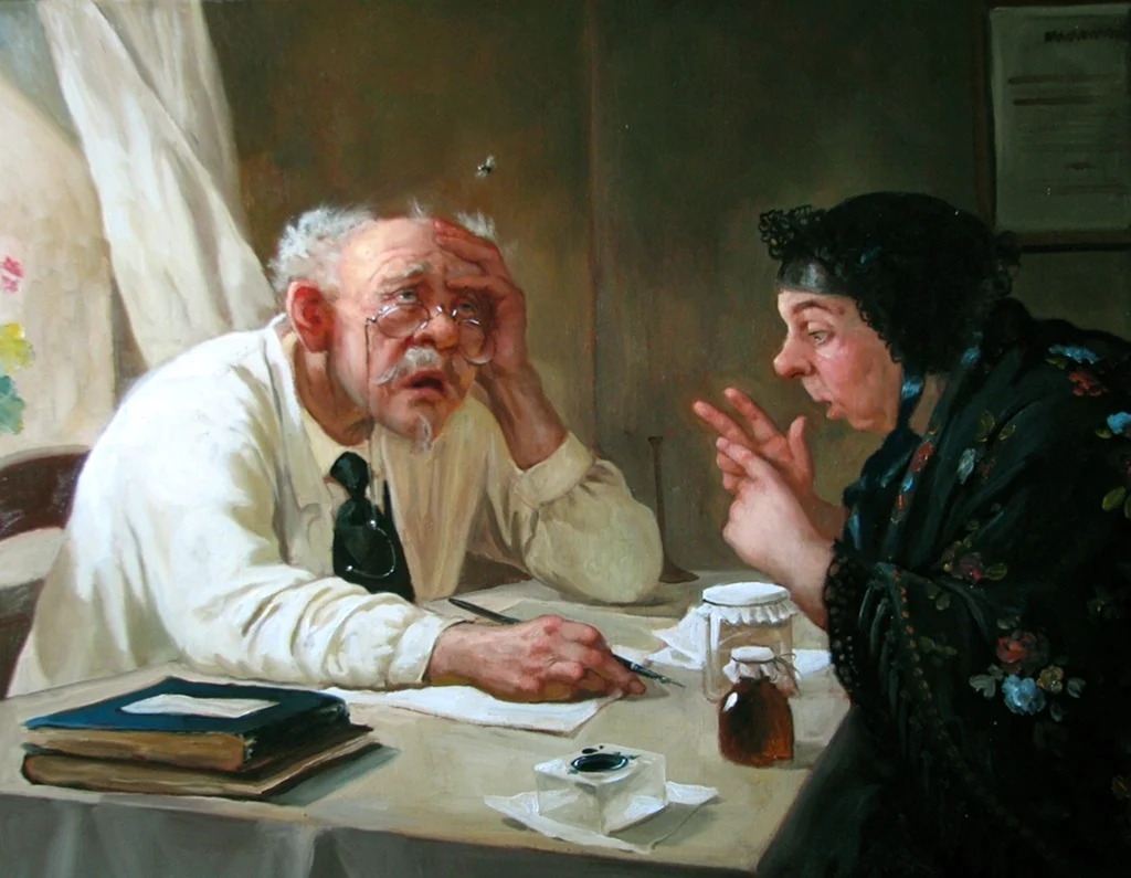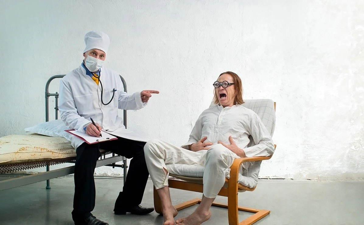 Ну что, ребят, тут точно каждый найдет свой диагноз! Художник, походу, сам был на приеме у психиатра, но как-то весело и креативно!
