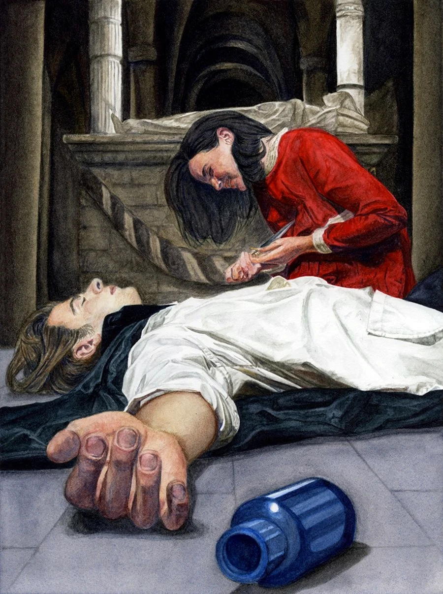 Вау! Эти иллюстрации просто потрясающие! Никак не ожидала, что можно так живо и красочно передать всю трагичность и красоту этой бессмертной истории любви. Каждый кадр будто бы оживает и переносит меня прямо в Верону. А какие эмоции на лицах героев! Просто дух захватывает! Спасибо за такой художественный праздник для глаз!
