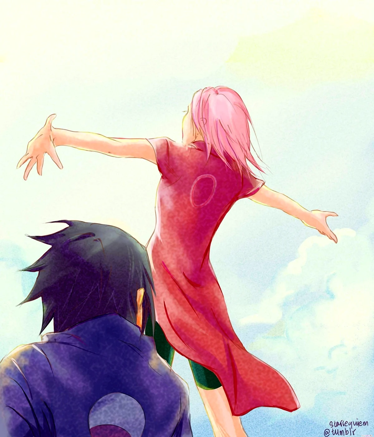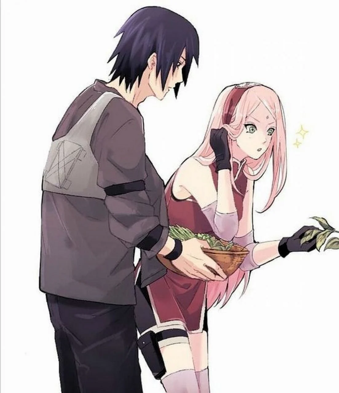 О, эта пара просто огонь! Саске такой мрачный, а Сакура с ним — как яркое солнце, прямо любовь с первого взгляда!