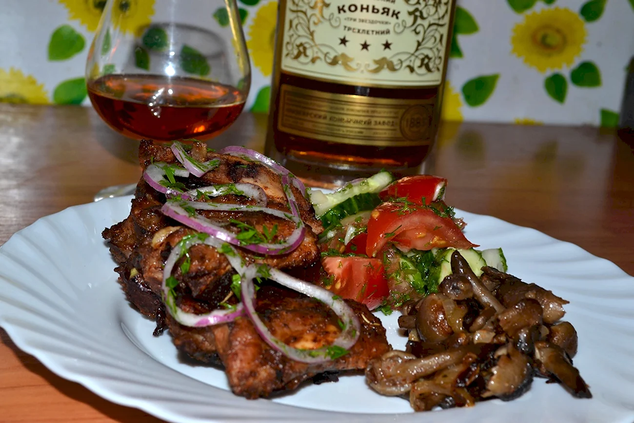Ничто так не согревает мужскую душу, как аромат сочного шашлыка на мангале и бокал хорошего коньяка. Эти вкусы воплощают в себе настоящую мужскую дружбу и отдых на природе. Не зря говорят, что лучшие разговоры происходят за столом с мясом и спиртным!