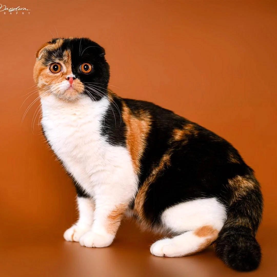 Красивые трехцветные вислоухие кошки из Шотландии просто очаровательны на каждой фотографии!