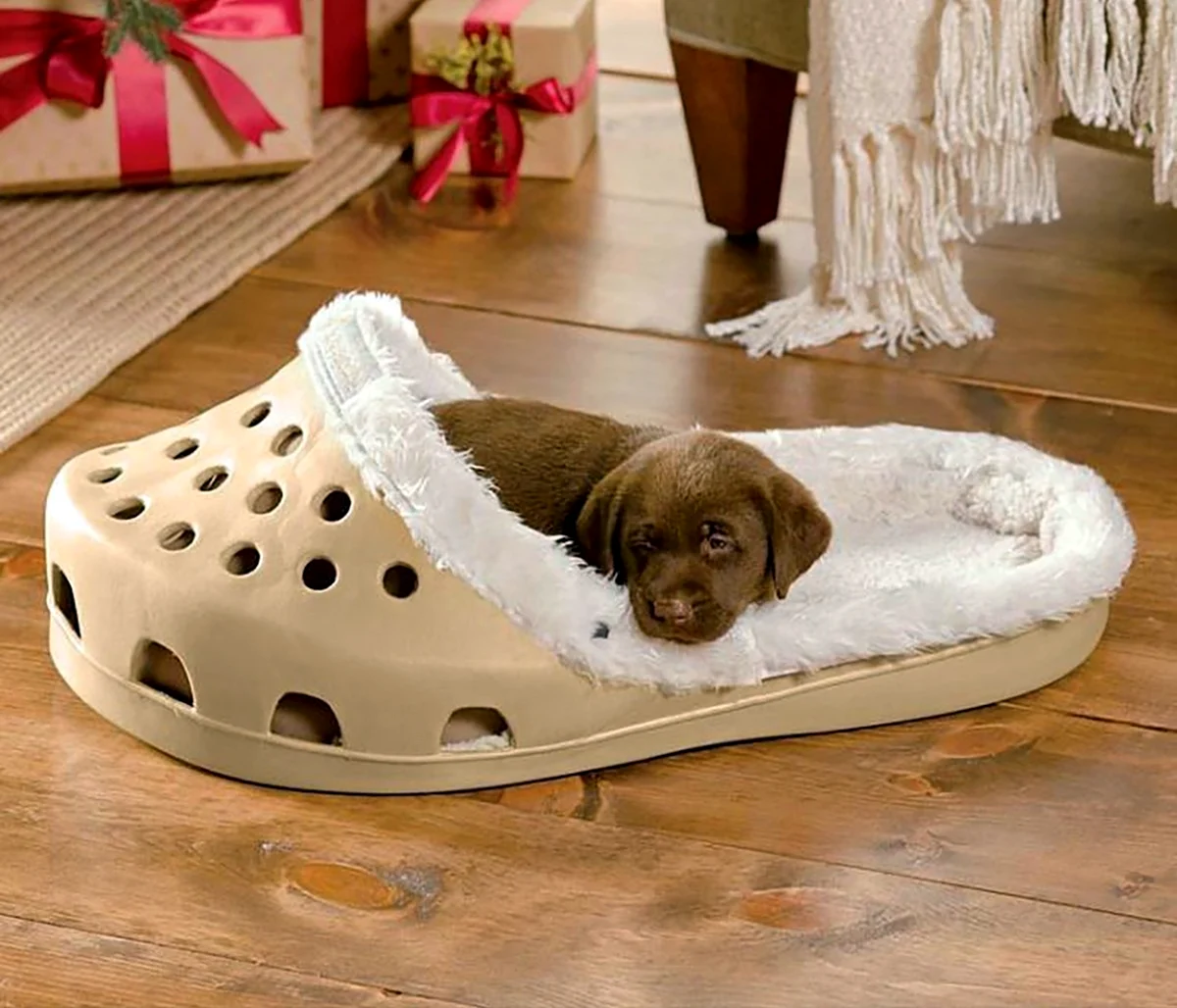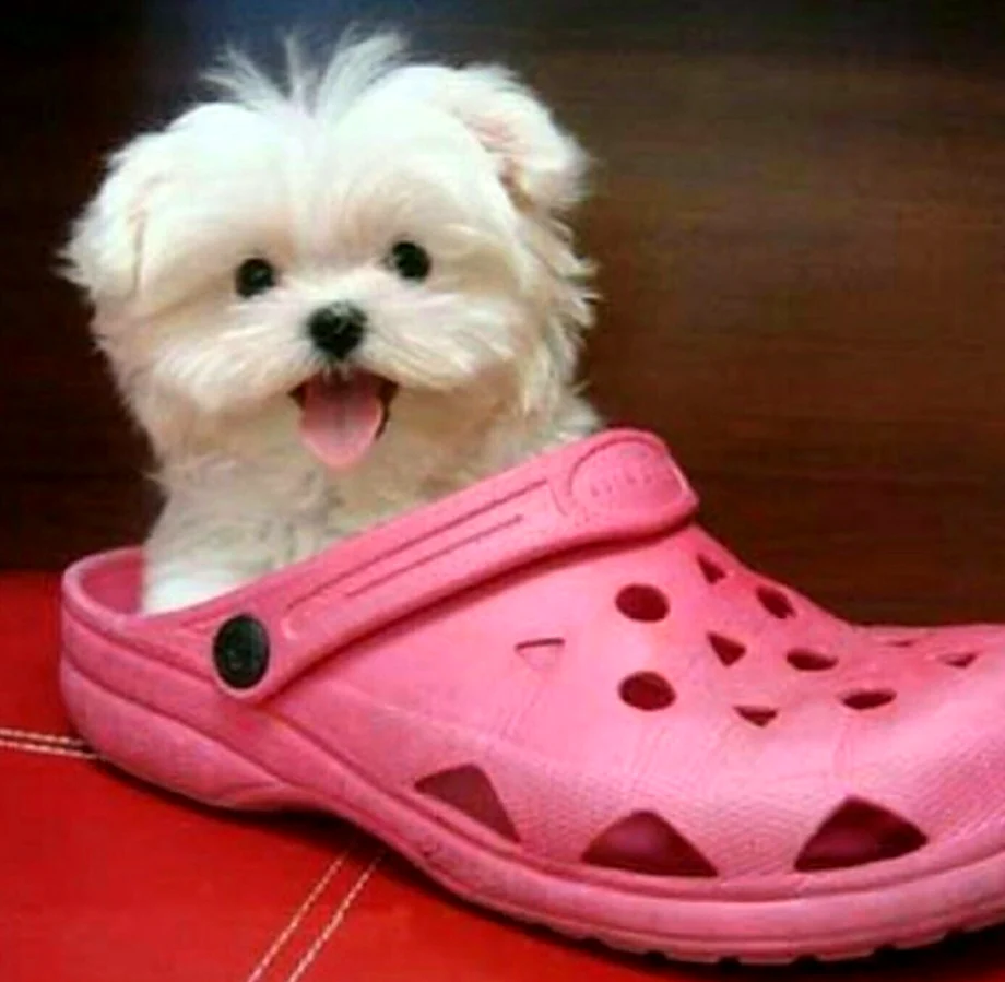 Какая же милая и нежная собачка, позирующая в ярких и стильных кроксах!