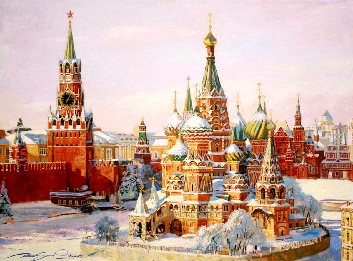 Прекрасные обои с изображением Собора Василия Блаженного добавят уютности и загадочности любому интерьеру.