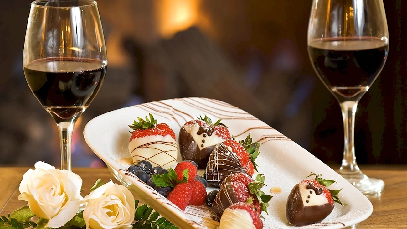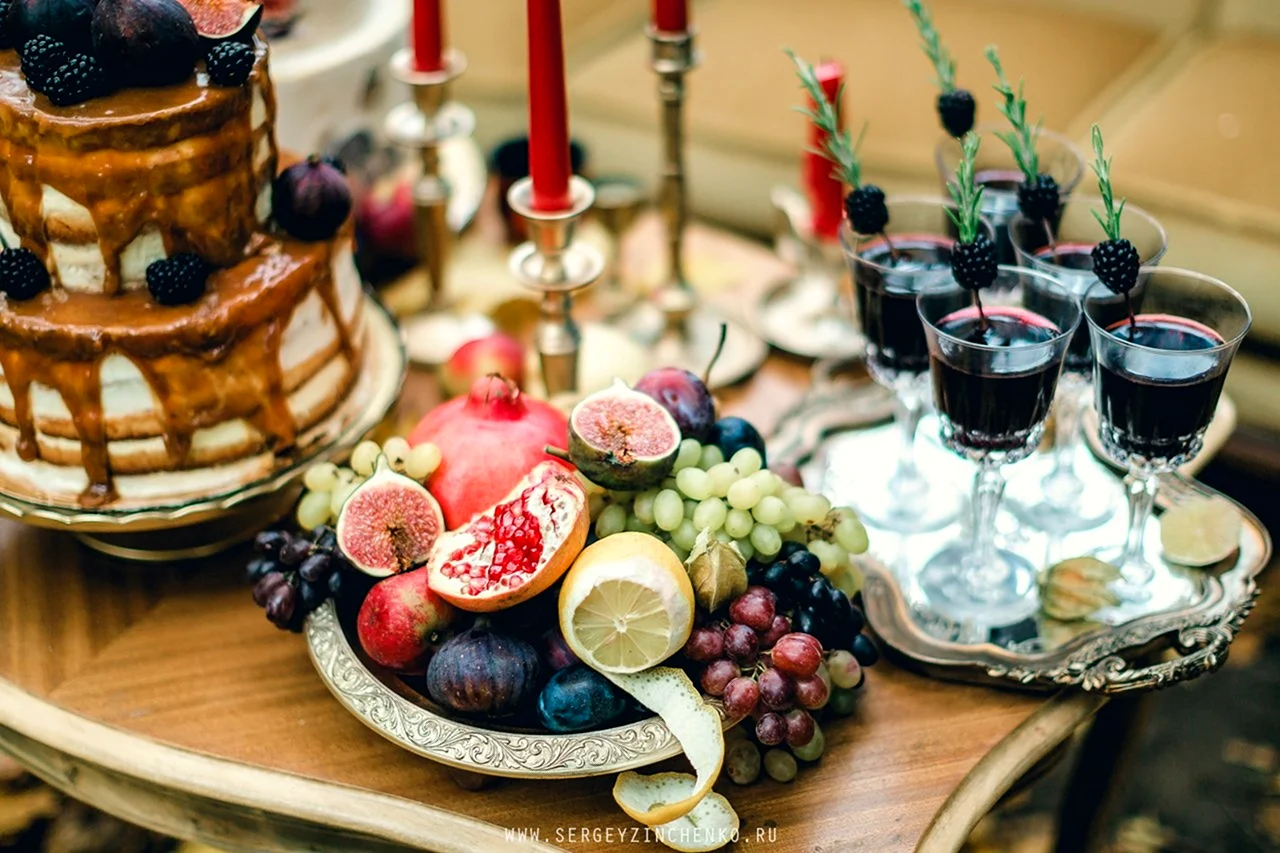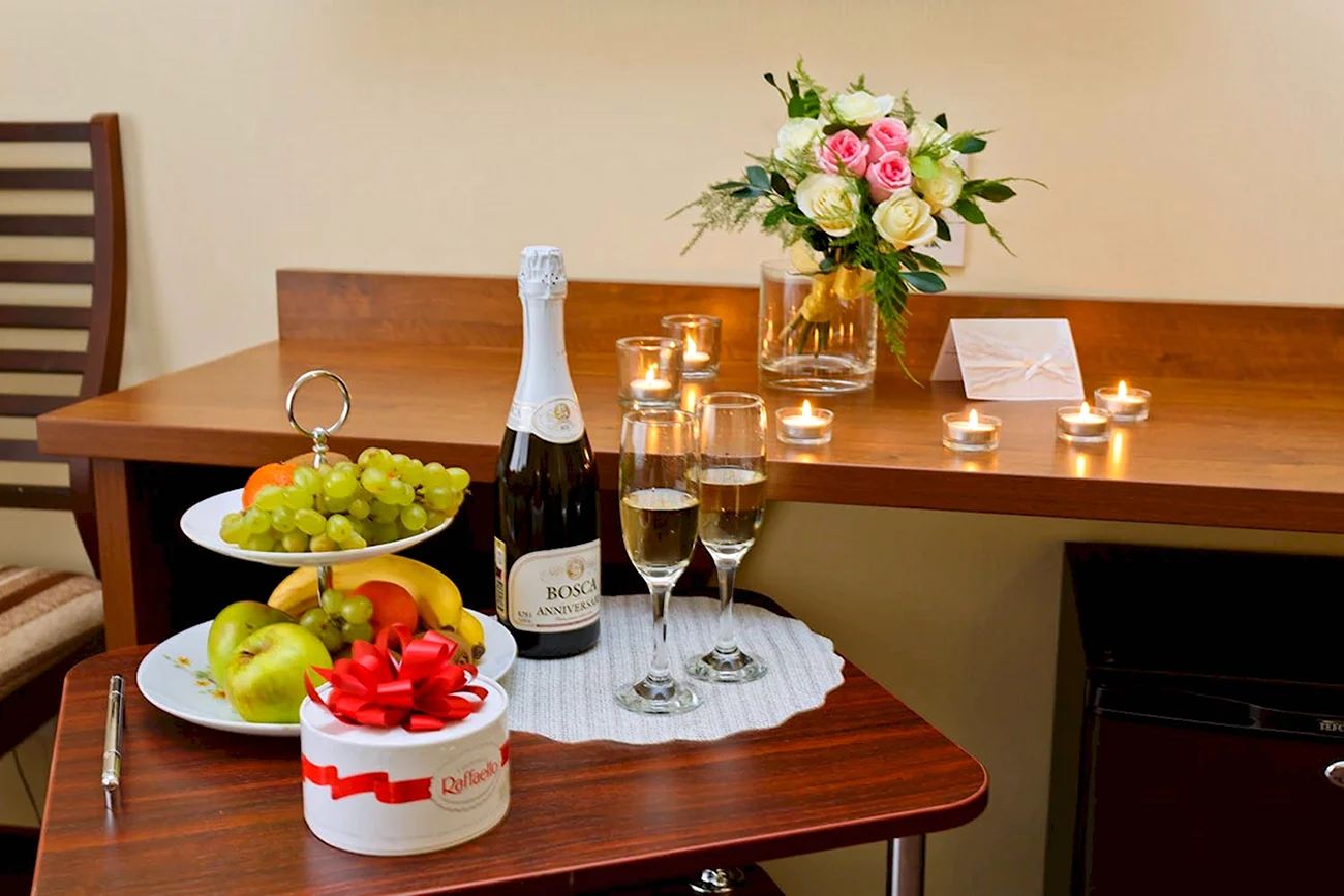 Романтический уголок с изысканными угощениями, созданный для нашего удовольствия.