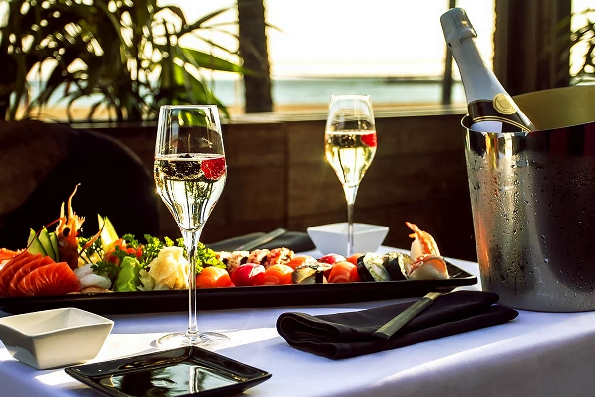 А вот это я понимаю: стол накрыт настоящим мужским романтическим ужином — шампанское, сочные фрукты, все для настоящего гурмана! Не ожидал такого изыска на просторах интернета, но теперь точно знаю, как сделать свой вечер незабываемым. Хочу такой же стол!