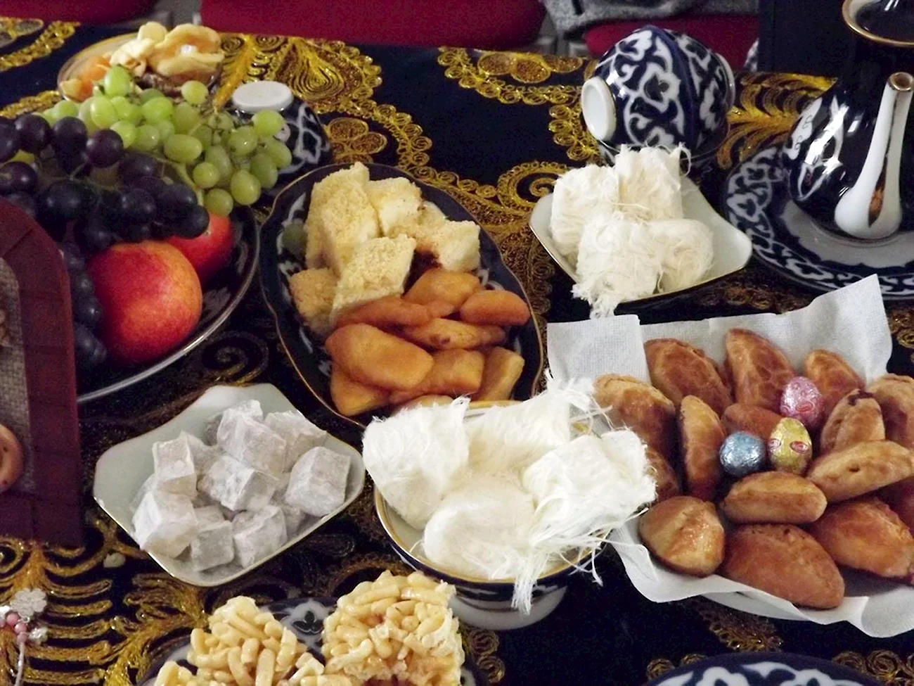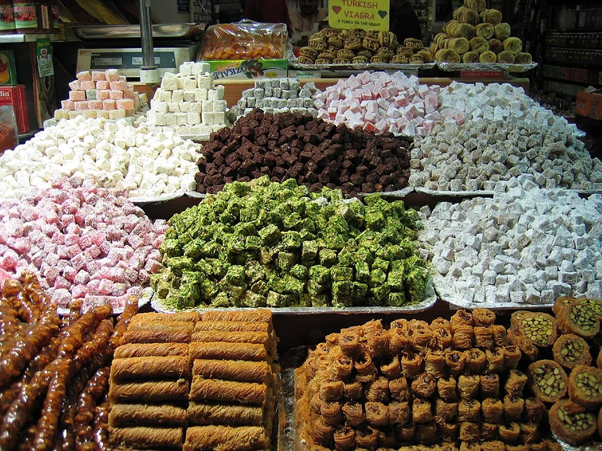 Ооо, какие тут вкусности! Кажется, я только что попала в рай для сладкоежек! Эти чудесные угощения словно сошли со страниц восточных сказок! Сразу захотелось попробовать всё и сразу! Сфотографируйте меня в обнимку с этой красотой – пусть все завидуют!