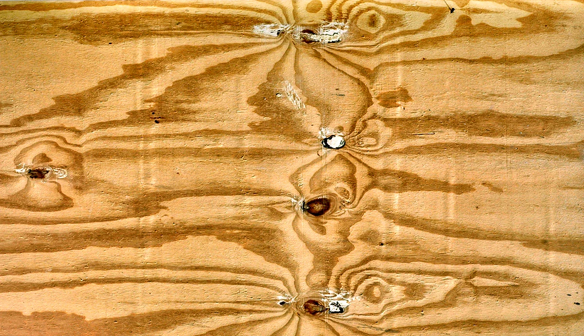 А вот если приглядеться внимательнее к этой фотографии, можно увидеть настоящее искусство в деталях. Такая рельефная текстура торца фанеры создает уникальный орнамент, который словно загадочное послание от самой природы. Невероятно красиво и вдохновляюще!