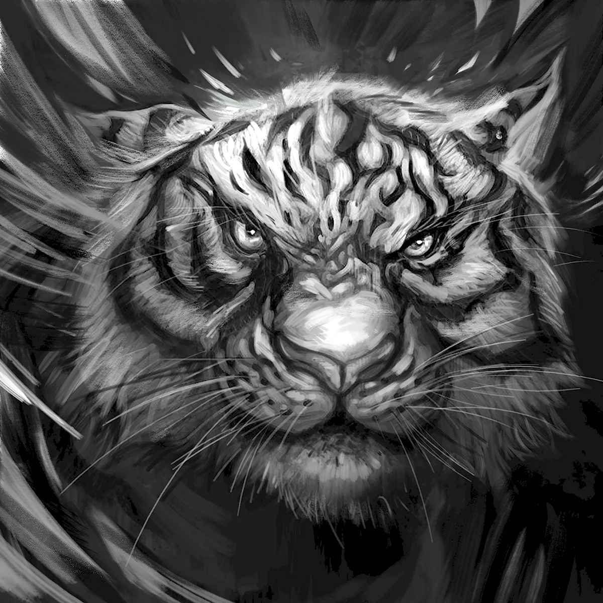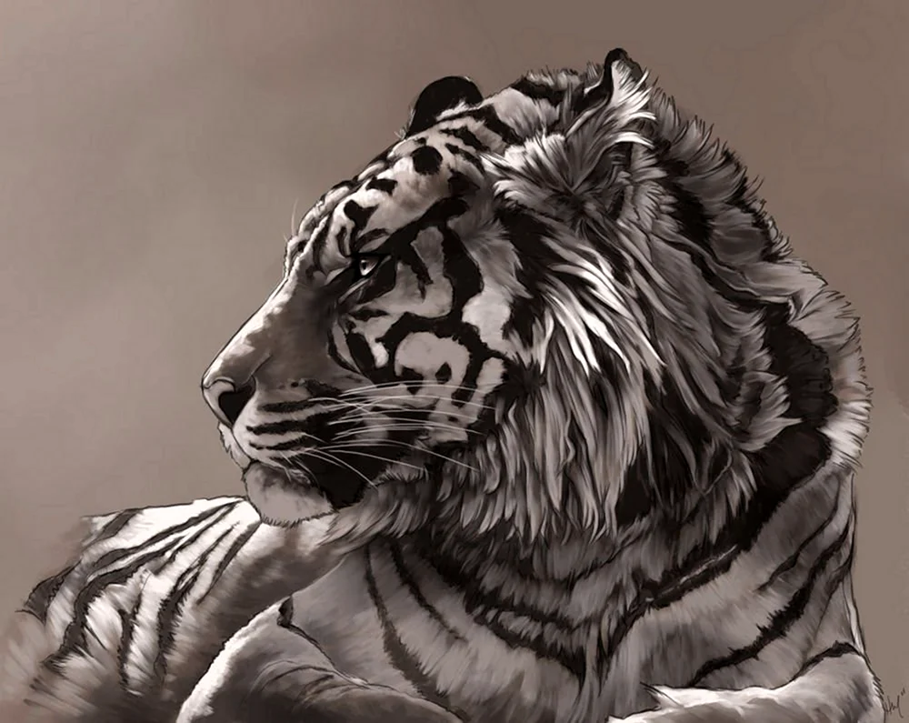 Вау, какой мощный и величественный зверь на этом рисунке! Этот тигр выглядит таким устрашающим и красивым одновременно. Прямо чувствуешь его силу и грацию через каждую черту и линию. Просто потрясающая работа!