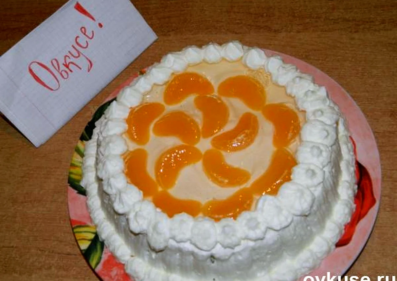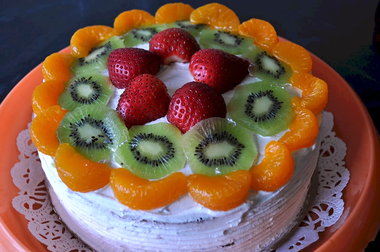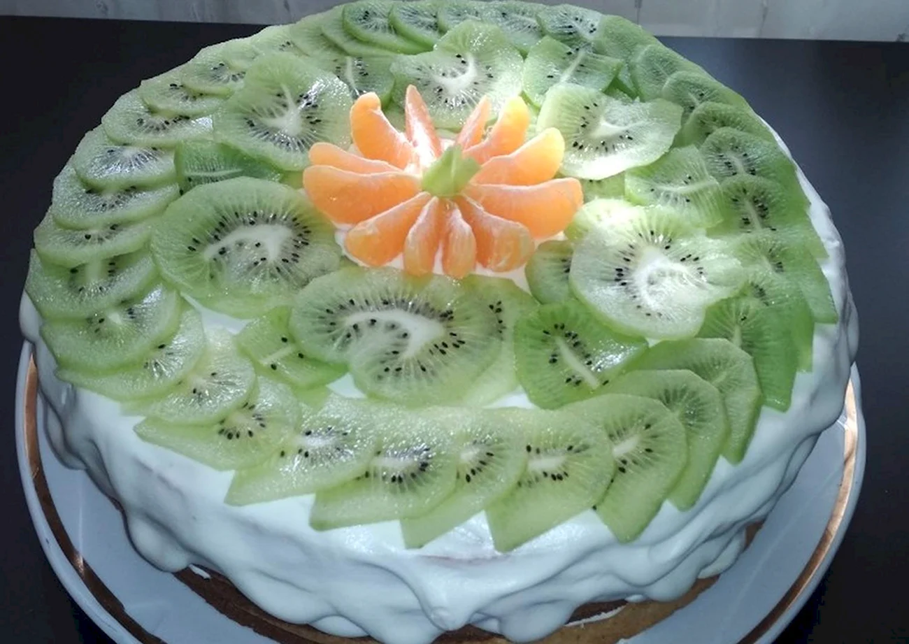 Этот торт прямо как лето на тарелке! Киви и мандарины так ярко смотрятся, что даже не хочется есть — хочется любоваться!