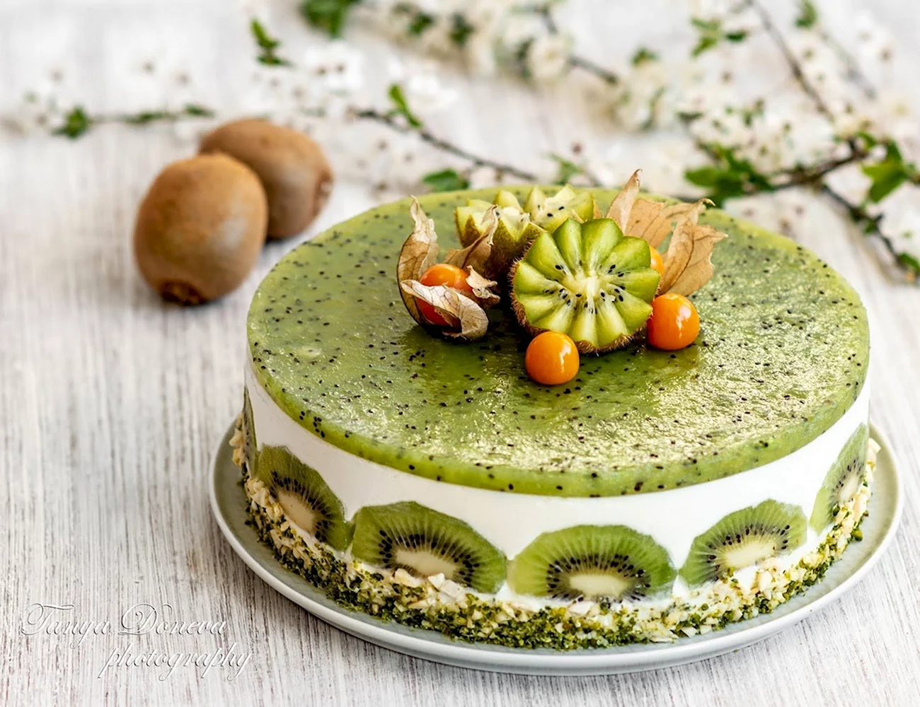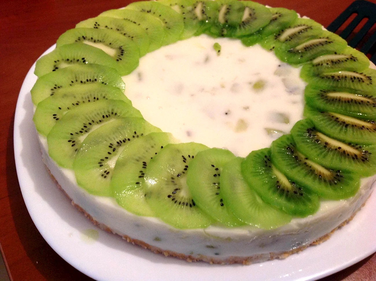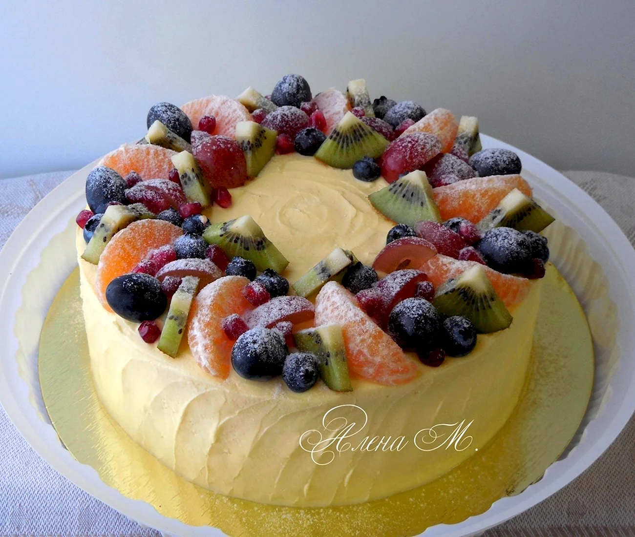 Этот торт прямо как лето на тарелке! Киви и мандарины так ярко смотрятся, что даже не хочется есть — хочется любоваться!