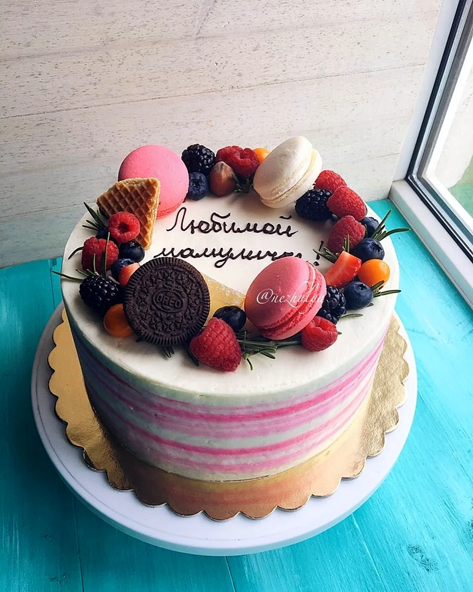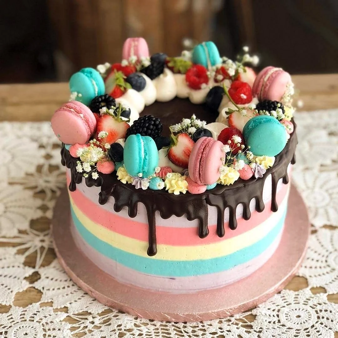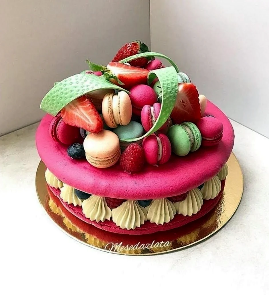 Ого, это просто праздник для глаз и вкус! Никогда не думала, что макароны и ягоды могут так классно смотреться на торте. Такая красота, что даже жалко есть! Но если уж попробую, то точно не смогу остановиться!