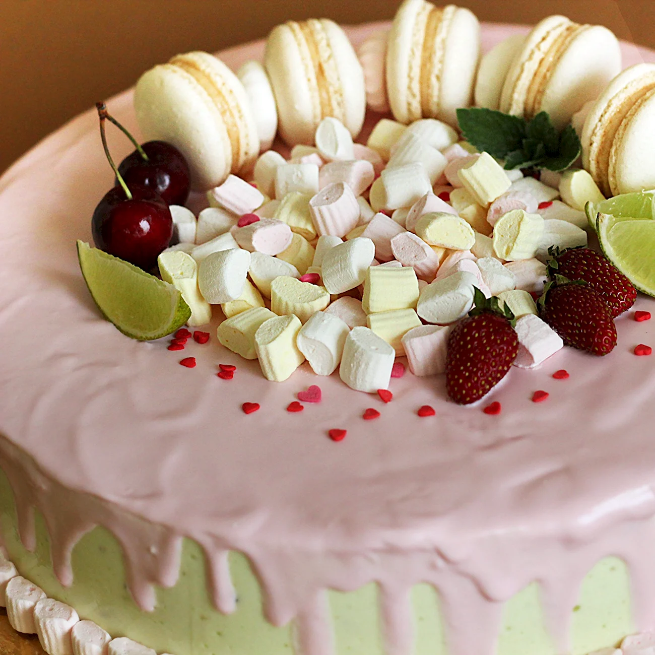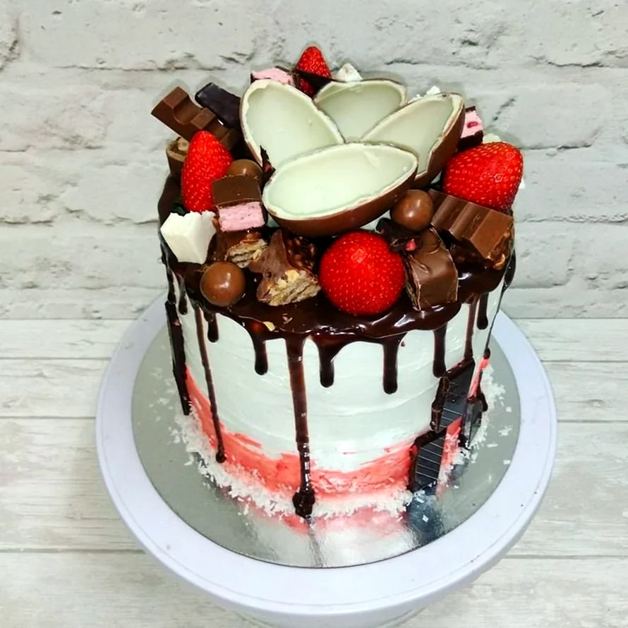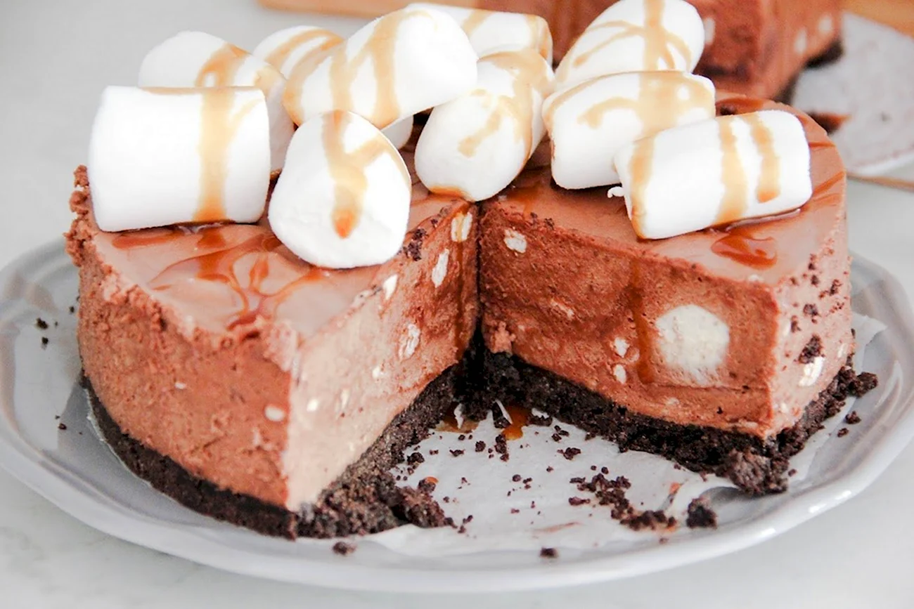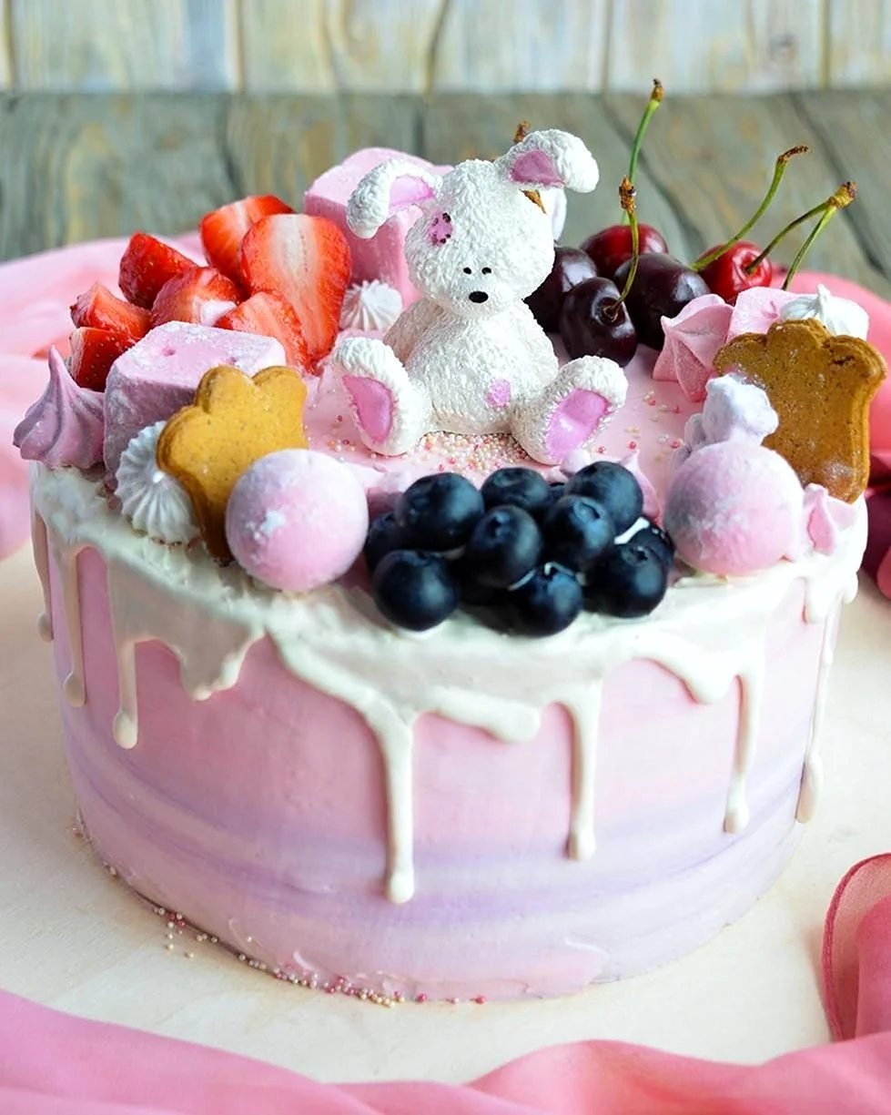 Какой сладкий взрыв вкуса! Фрукты с маршмеллоу — просто идеальное сочетание для торта, и выглядит так аппетитно, что не знаю, с чего начать — с украшения или с кусочка!