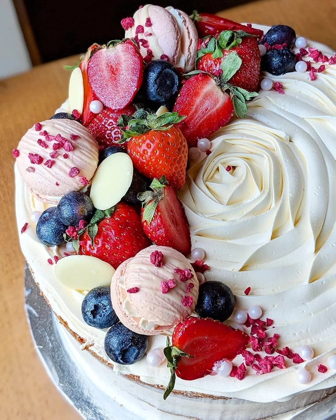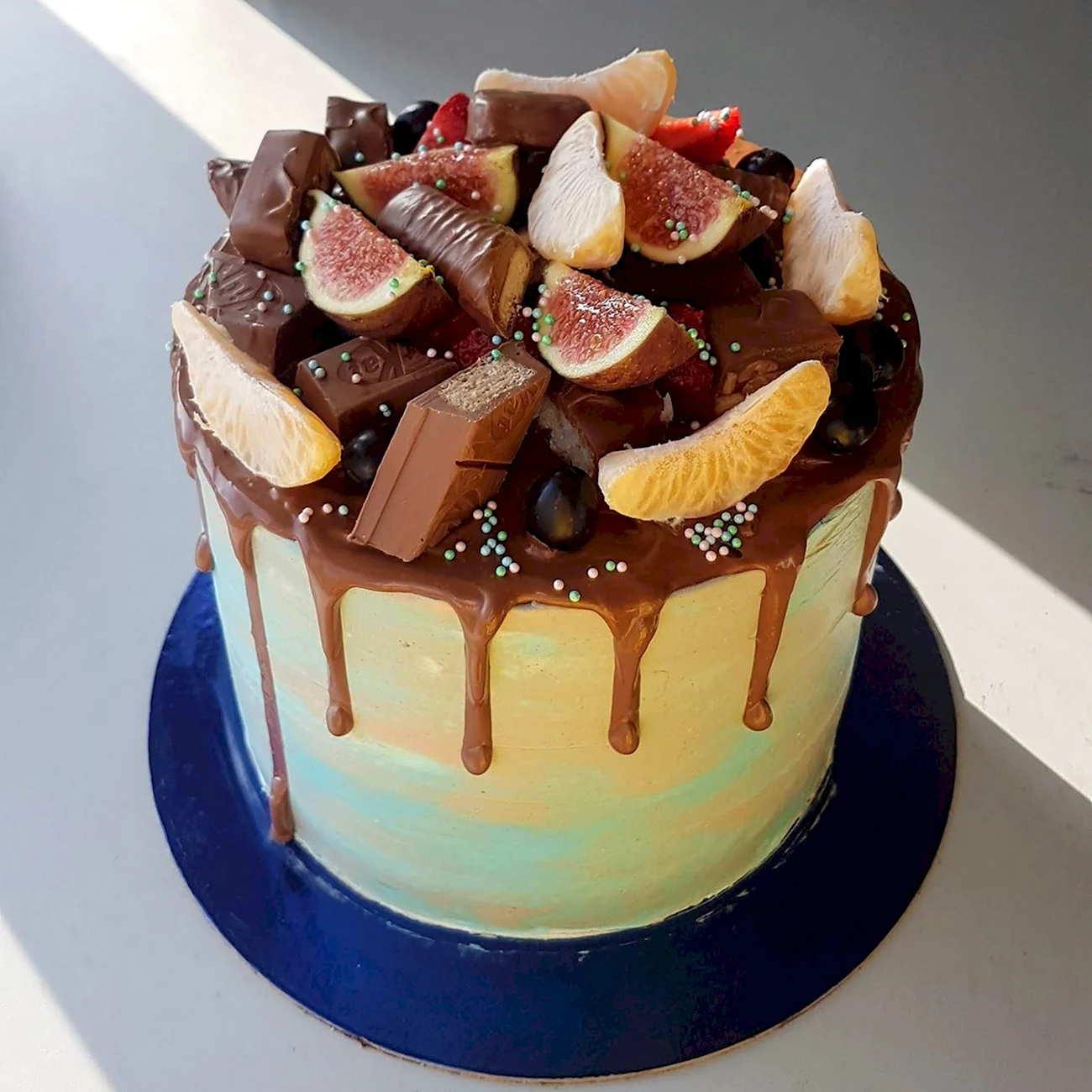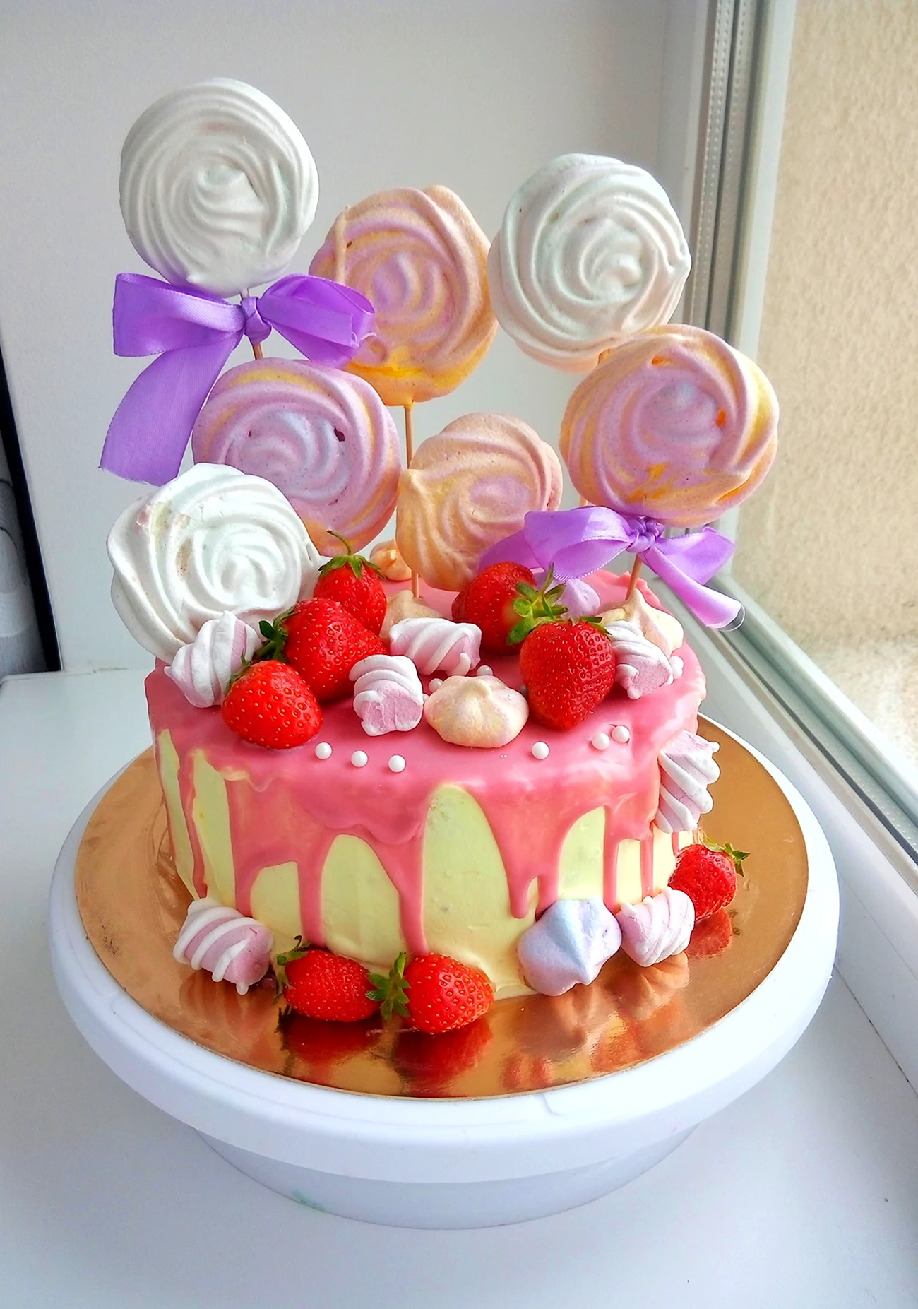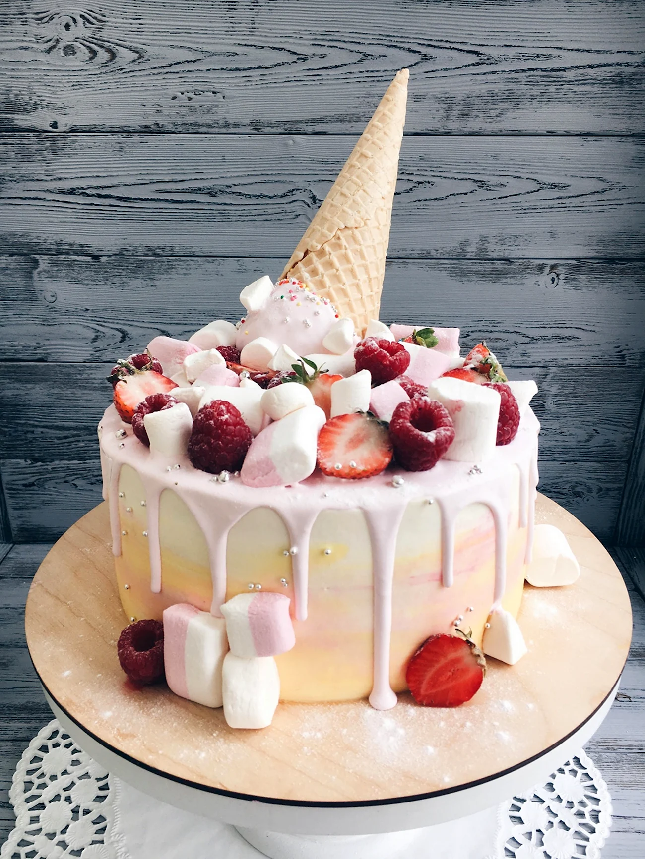 Какой сладкий взрыв вкуса! Фрукты с маршмеллоу — просто идеальное сочетание для торта, и выглядит так аппетитно, что не знаю, с чего начать — с украшения или с кусочка!