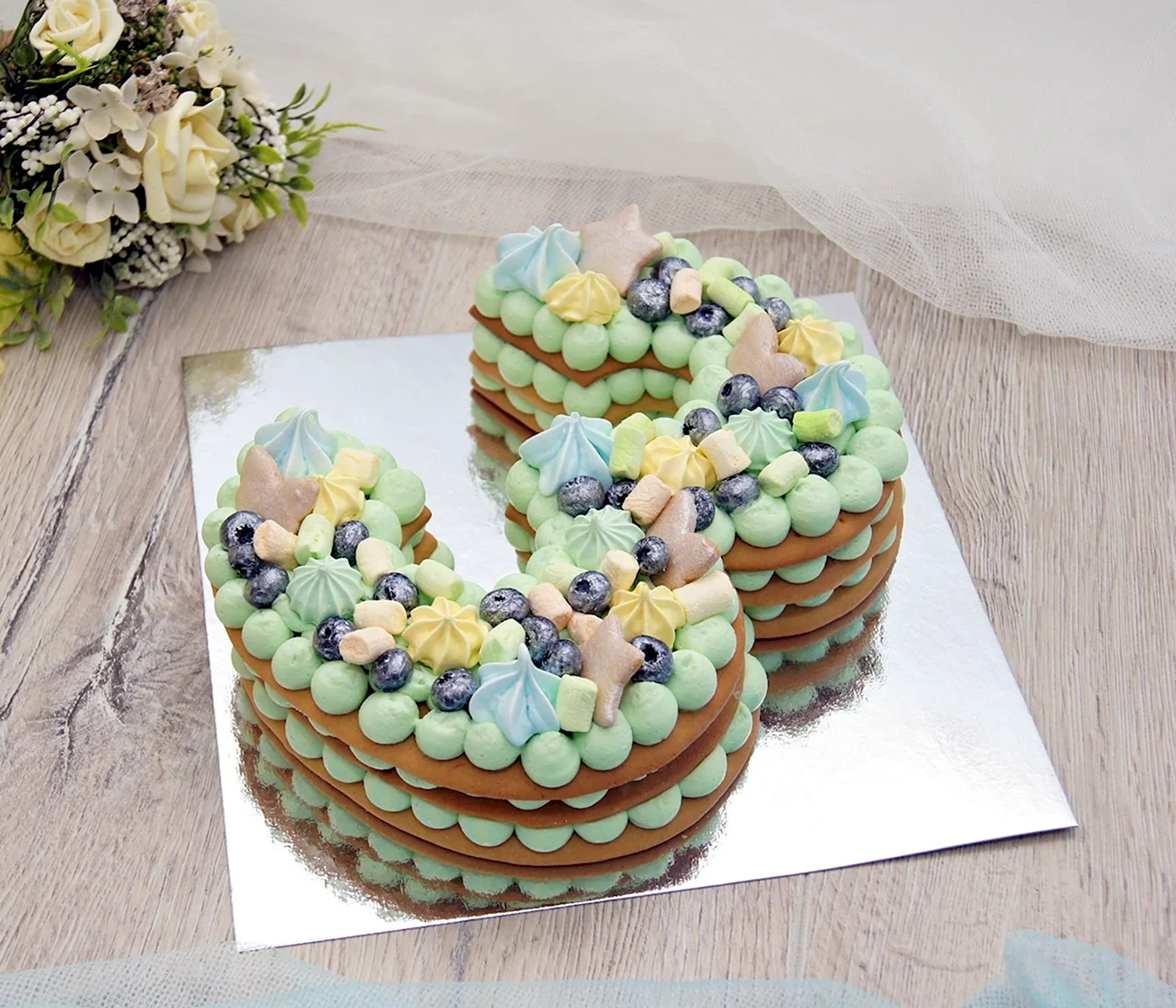 Красиво и вкусно украшенные торты с маршмеллоу и свежими фруктами добавят праздничное настроение любому мероприятию.